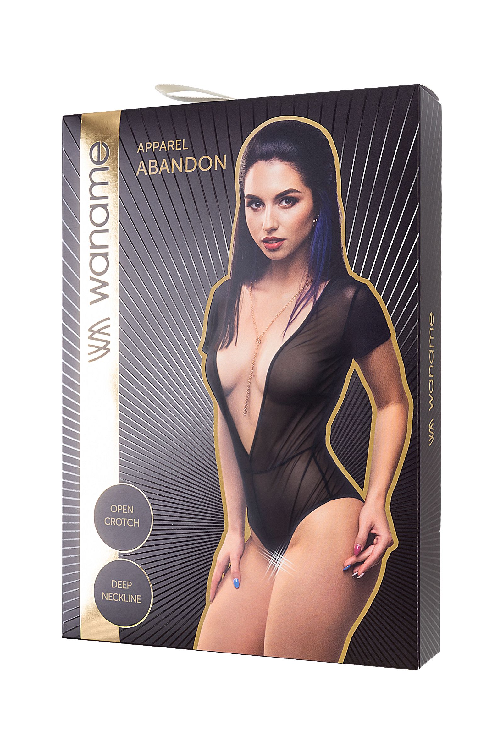 Линия провокационного эротического белья WANAME® Apparel – для женщин, которые хотят наслаждения и не скрывают этого. Эротическое боди с короткими рукавами «Эба́ндэн» (англ. Abandon – «Раскрепощенность») из тонкой прозрачной эластичной сетки облегает фигуру, ощущается невесомым, не сковывает движений, но визуально меняет силуэт. Шелковистая поверхность материала дарит приятные ощущения при прикосновении. Современные элементы дизайна боди тешат женское самолюбие. Аккуратные швы и вытачки акцентируют внимание на плавных изгибах тела и создают силуэтную посадку. Глубокие вырезы в зоне декольте и на спинке позволяют легко освободить грудь. Лаконичный крой и эротический доступ дополняют чувственный образ. Модели белья Waname® Apparel эксклюзивны, разработаны и произведены в России с учетом предпочтений российских покупательниц.