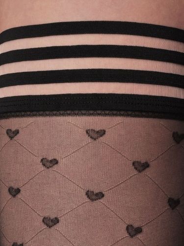 Шелковистые чулки MIREY SWEET плотностью 20 den с резинкой на силиконовой основе и игривым рисунком в виде сердечек.