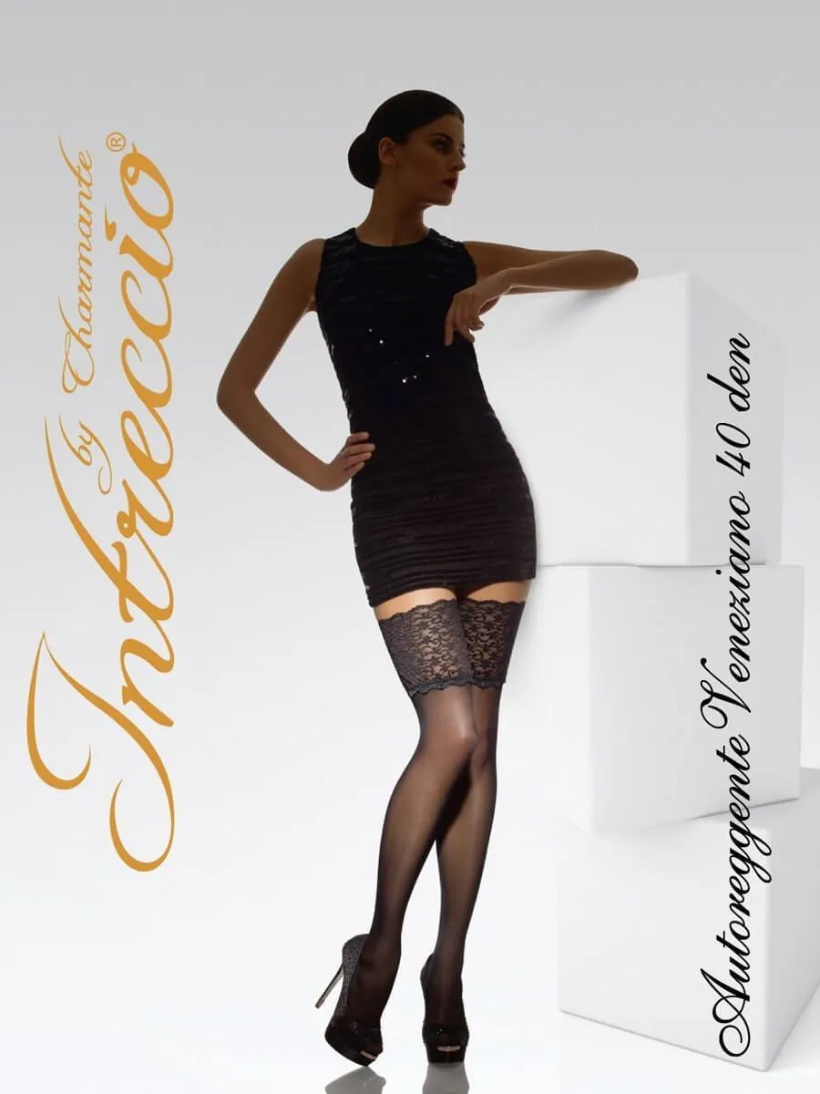 Элегантные чулки с широкой кружевной коронкой Veneziano от бренда Charmante украшены изящной вышивкой с растительным узором. Чулки визуально сделают ножки стройнее, а широкая кружевная резинка будет соблазнительно обхватывать бедра. Такие изысканные чулки будут отлично смотреться как с повседневной одеждой, так и с вечерними нарядами. Также они смогут стать пикантной деталью, которая дополнит Ваш ролевой интимный костюм.