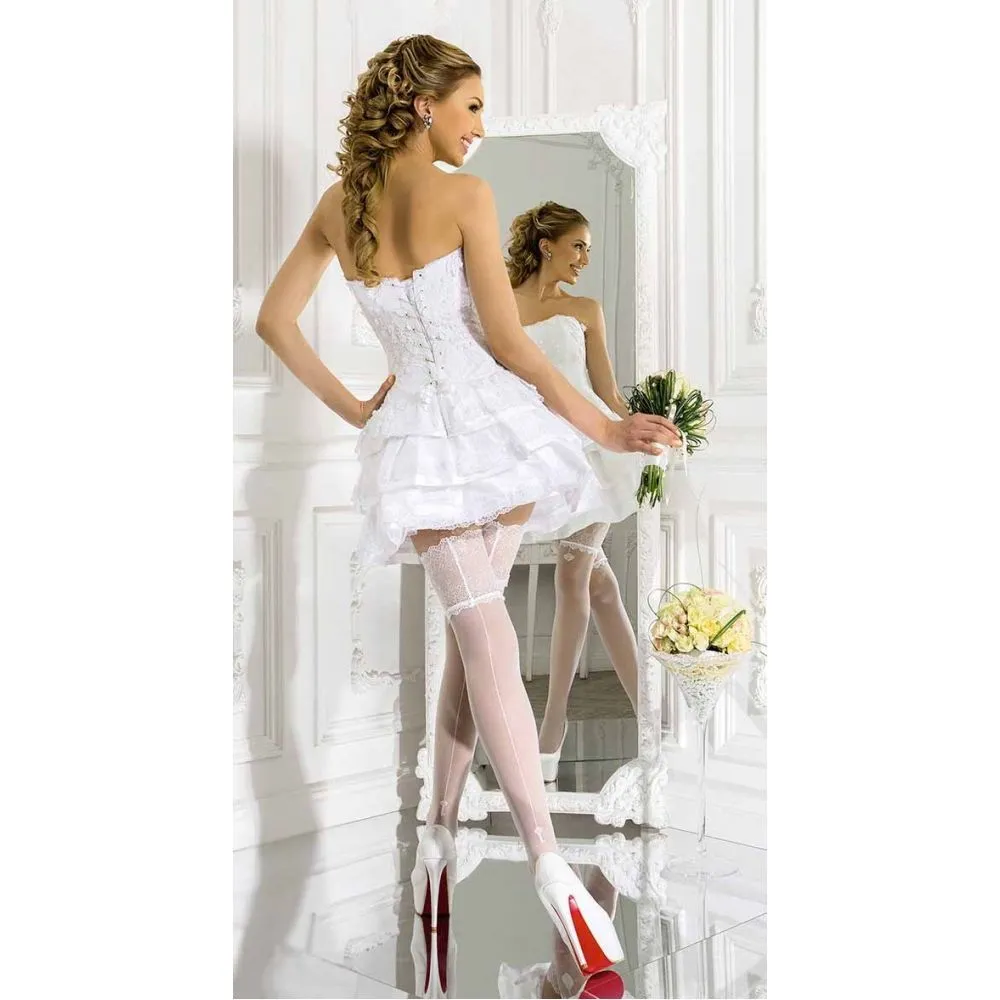 Стильные чулки с эффектным швом, завершающимся принтом в виде ключика по задней детали. По верху передней детали в центре - принт в виде миниатюрного замочка. Широкая кружевная резинка на силиконовой основе и укрепленный носочек - для особого комфорта. Идеальны для свадебной церемонии!