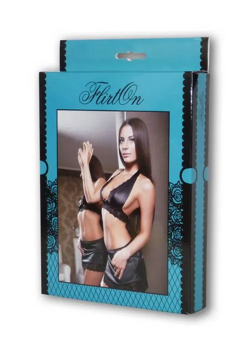 Этот комплект из чёрного атласа раскроет все секретные желания. Топ с кружевными вставками и соблазнительно глубоким декольте сделает обладательницу белья неповторимой и откровенно–сексуальной. Мини-юбочка пикантно приоткрывает серединку ягодиц через небольшую «прорезь», обрамлённой кружевом и декорированной маленьким атласным бантиком. Идеально подойдёт для тех, кто ставит ставку на женственность и сексапил.