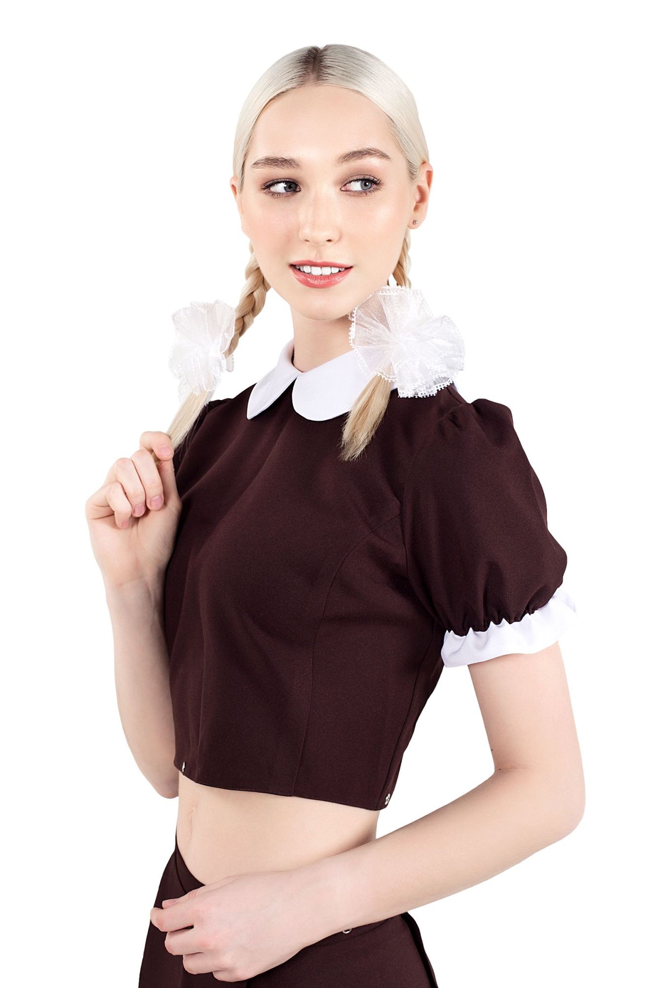 Эротический костюм русской школьницы от Pecado создан для Ваших самых чувственных ролевых игр! Темный топ, из которого выполнена верхняя часть комплекта, состоит из полиэстера. Материал нежный, приятный, износостойкий. Топ легко и быстро надевается, фиксируется с помощью застежек сзади. Также, благодаря металлической фурнитуре, соединяется с нижней часть костюма. Кокетливый вырез на спине открывает притягательный обзор и возбуждающий полёт фантазий. Быть школьницей, готовой к любым сексуальным урокам легко! Вместе с эротическим костюмом от Pecado. Нижняя и верхняя часть комплекта приобретаются отдельно. Именно так, Вы сможете подобрать оптимальный размер. ● Состав комплекта – топ, банты. ● Материал – 100% полиэстер. ● Качественная фурнитура. ● Цвет топа - коричневый, цвет бантов - белый . ● Сделано в России. ● Размерный ряд 40, 42, 44, 46 (Соответствует Российской размерной сетке).