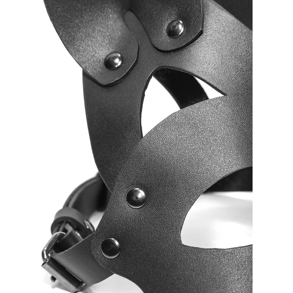 Стильная маска кошки черного цвета выглядит очень эффектно благодаря своей оригинальной форме. Выполнен данный аксессуар из кожи, это авторская ручная работа. Эта маска отлично дополнит маскарадный костюм или эротический образ во время ролевых игр. Не бойтесь экспериментировать со своим образом, ведь даже такая небольшая деталь способна помочь Вам полностью вжиться в нужную роль и придать раскованности и уверенности в своей неотразимости.