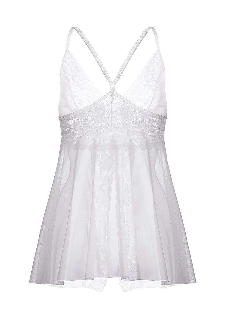 Комбинация Nataliya от Erolanta® с V-образным декольте и манящим разрезом спереди — неприлично роскошный вариант для эффектного соблазнения. Силуэт бэби-долл придает образу легкость и очаровательную наивность. Эластичная прозрачная сетка в сочетании с нежным кружевом интригующе подчеркивает сексуальность женского тела. Глубокий вырез на груди и провокационный разрез спереди приковывают внимание. Тонкие регулируемые бретели и кружево изящно обрамляют спину. Комбинация Erolanta® Nataliya — для особенных ночей. *Допускается замена кружева на аналогичное.