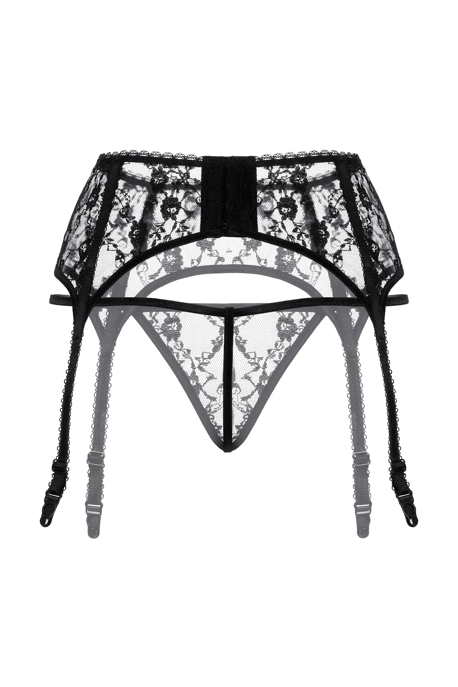 Кружевной пояс для чулок и стринги.