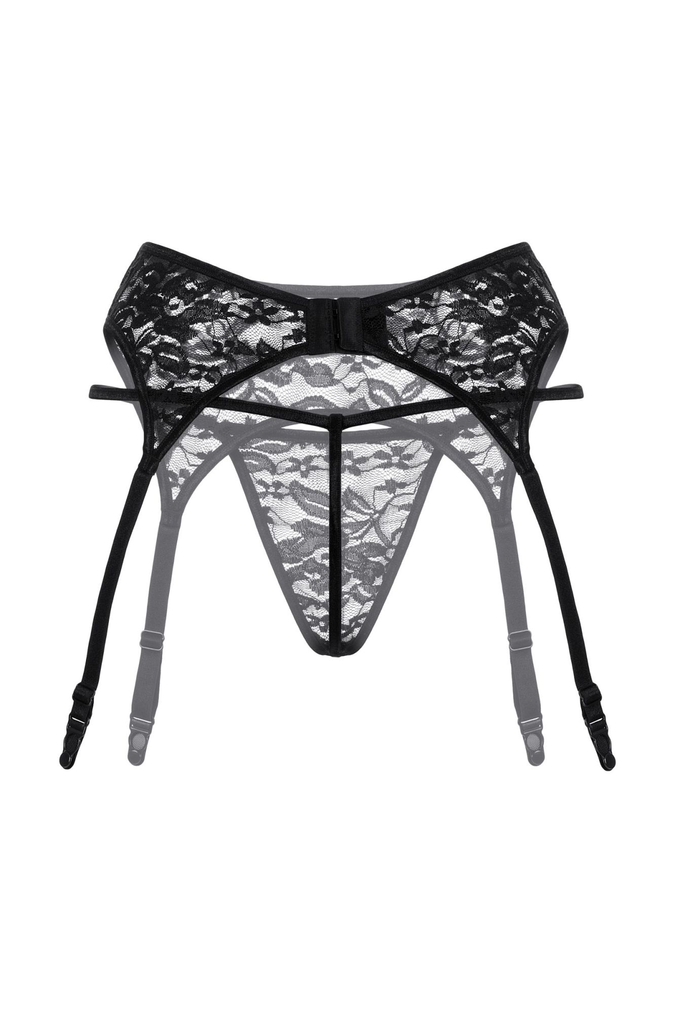 Кружевной пояс для чулок и стринги.