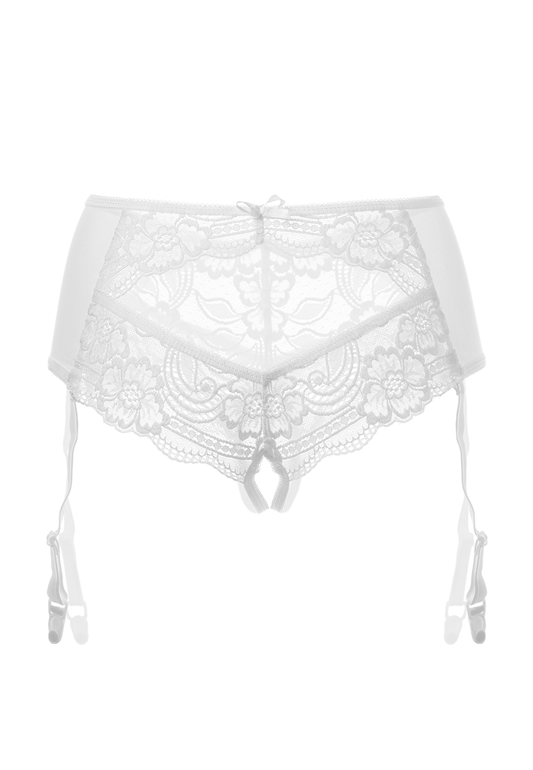 Эротические трусики-пояс Erolanta® Sheila, эластичные, из стрейч-сетки со сложными кружевными вставками, с вырезом сзади, без боковых швов, с атласными бантиками. Съемные регулируемые пажи. *Допускается замена кружева на аналогичное. Чулки в комплект не входят. На видео трусики Erolanta® Sheila дополнены идеально сочетающимся бралетт Erolanta® Nelly.