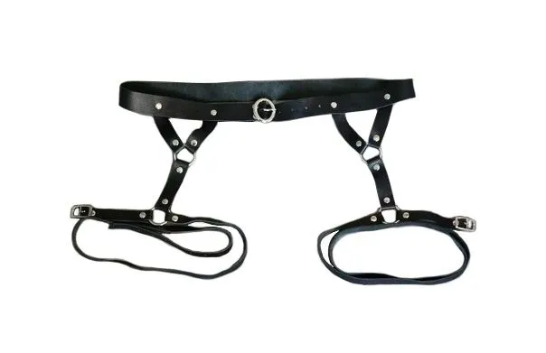 Гартеры помогут Вам в создании неповторимого образа для любовной игры. Подчеркните ими свой дерзкий стиль, пусть Ваш партнер будет поражен Вашим эффектным видом! Гартеры выполнены из натуральной кожи черного цвета. Их можно носить на поясе и на талии, размер регулируется. Гартеры регулируются спереди застежкой-пряжкой, ниже идет длинный ремень, которым обматывается нога. Затем ремень застегивается на произвольной высоте пряжкой.