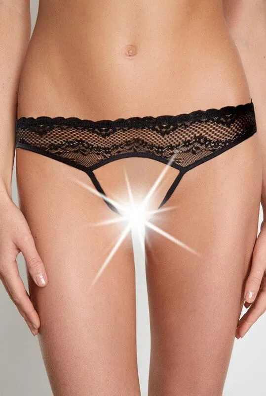 Сексуальные трусики-стринг Kinzi от российского бренда Infinity Lingerie выполнены из тонкого кружевного материала с интересным узором. Сзади они украшены пикантным атласным бантиком, благодаря которому Ваш образ будет казаться более игривым и соблазнительным. Трусики имеют откровенный вырез на ластовице, полностью обнажающий самые интимные места. Наденьте такие трусики во время романтической ночи с любимым, чтобы сразу рассказать ему о своих желаниях.