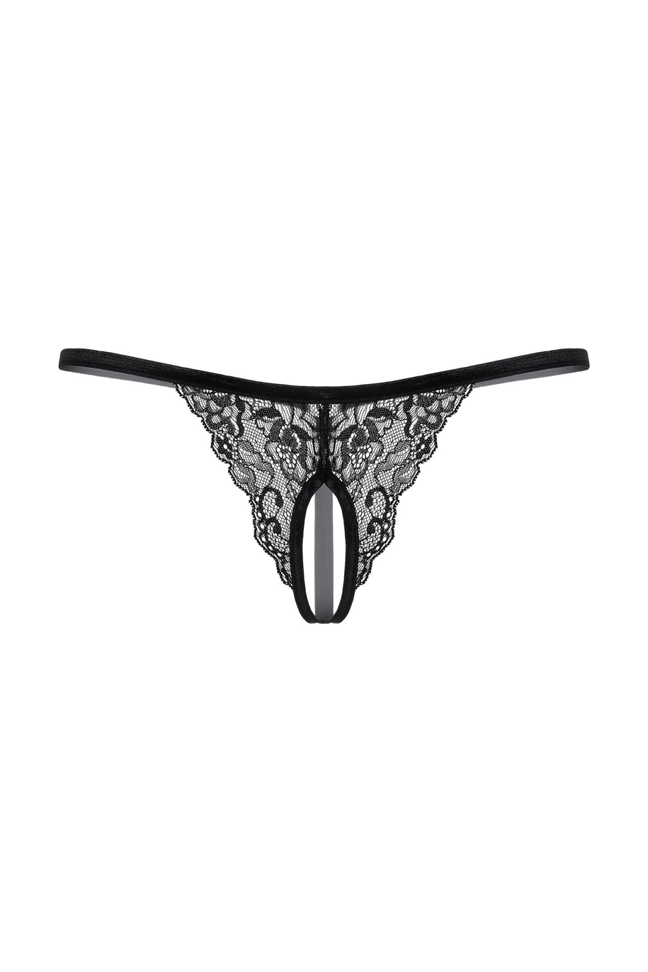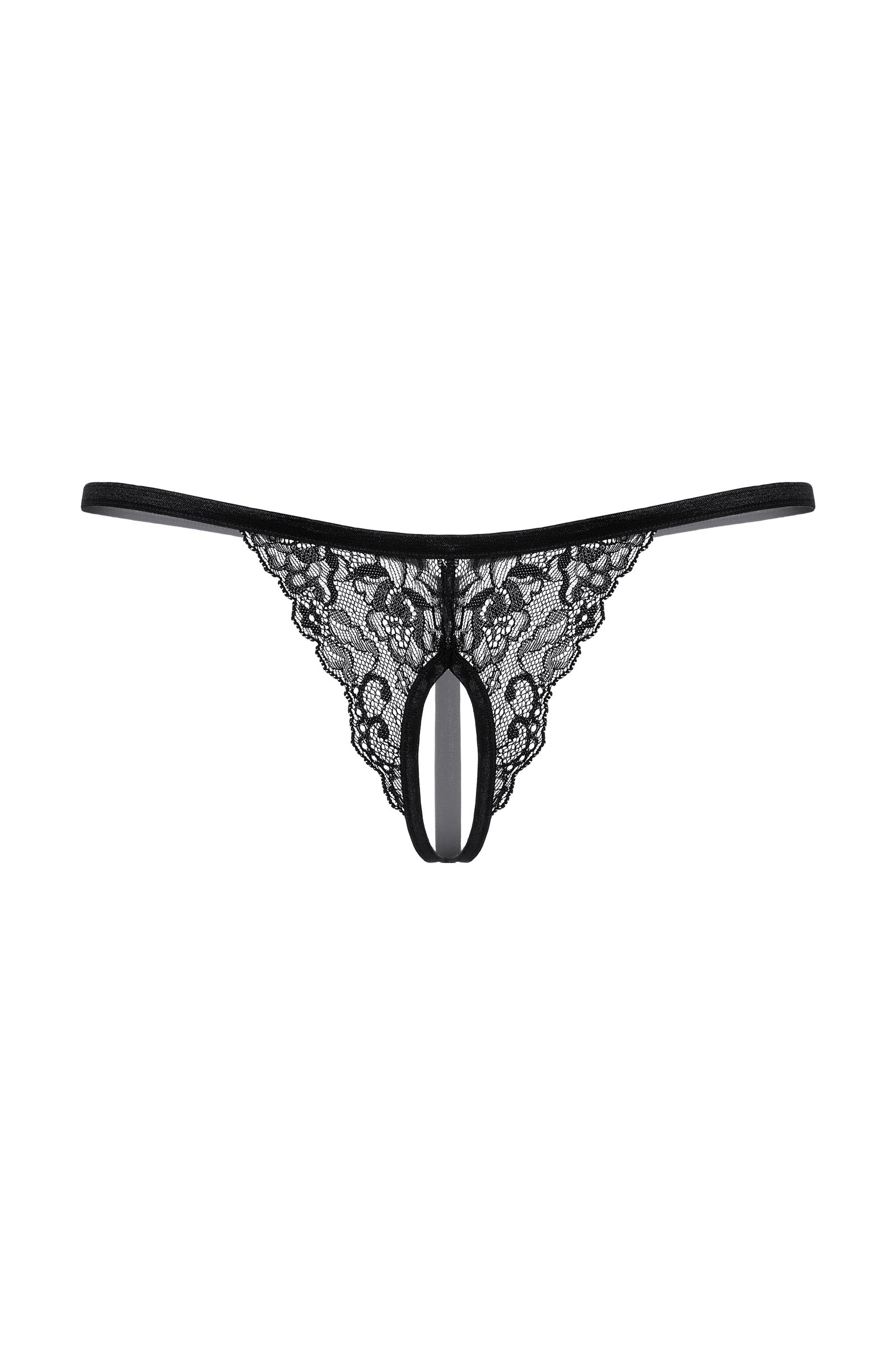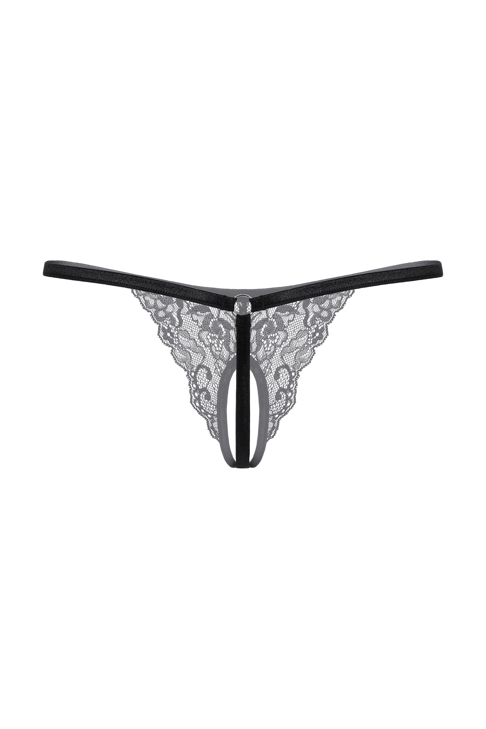Стринги кружевные с открытым доступом. Сзади декорированным металлическим кольцом.