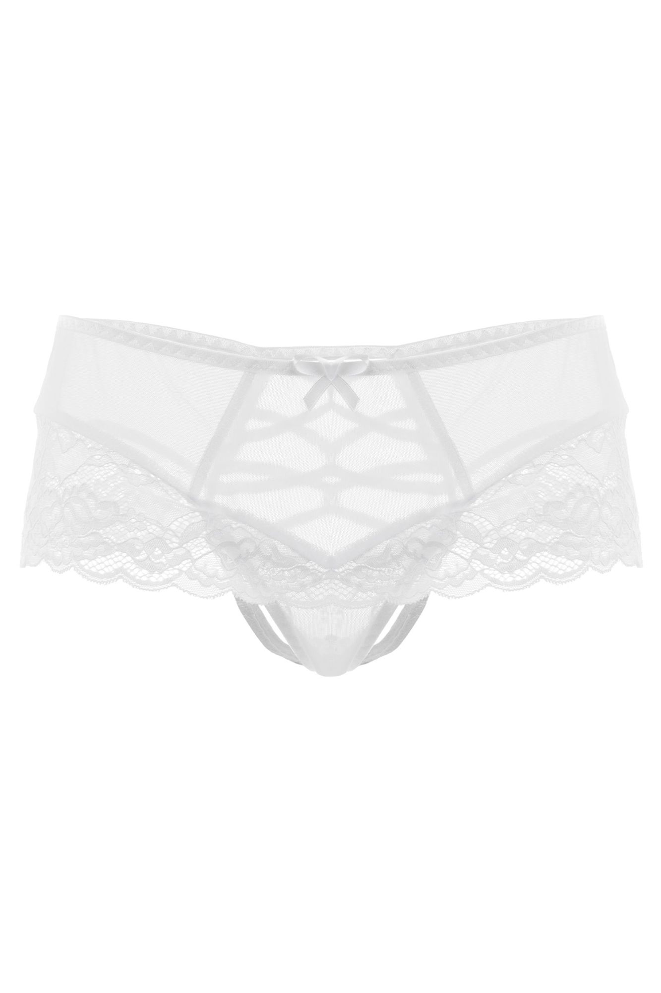 Яркое сочетание изысканного кружева и смелой шнуровки делает эротические трусики Cheryl от Erolanta® незаменимым атрибутом интригующего образа. Эластичная сетка, дополненная вставками из нежного кружева, соблазнительно облегает бедра и расставляет на них аппетитные акценты. Эффектная шнуровка пробуждает смелые фантазии. Миниатюрные кольца и регуляторы на внутренних перемычках обеспечивают комфортную посадку. А дизайн доступа к интимной зоне позволяет наслаждаться игрой, не снимая при этом трусики. Почувствуйте себя по-настоящему желанной с трусиками Cheryl от Erolanta®. *Допускается замена кружева на аналогичное. На видео трусики Erolanta® Cheryl дополнены бралеттом с застежкой спереди Erolanta® Odette.
