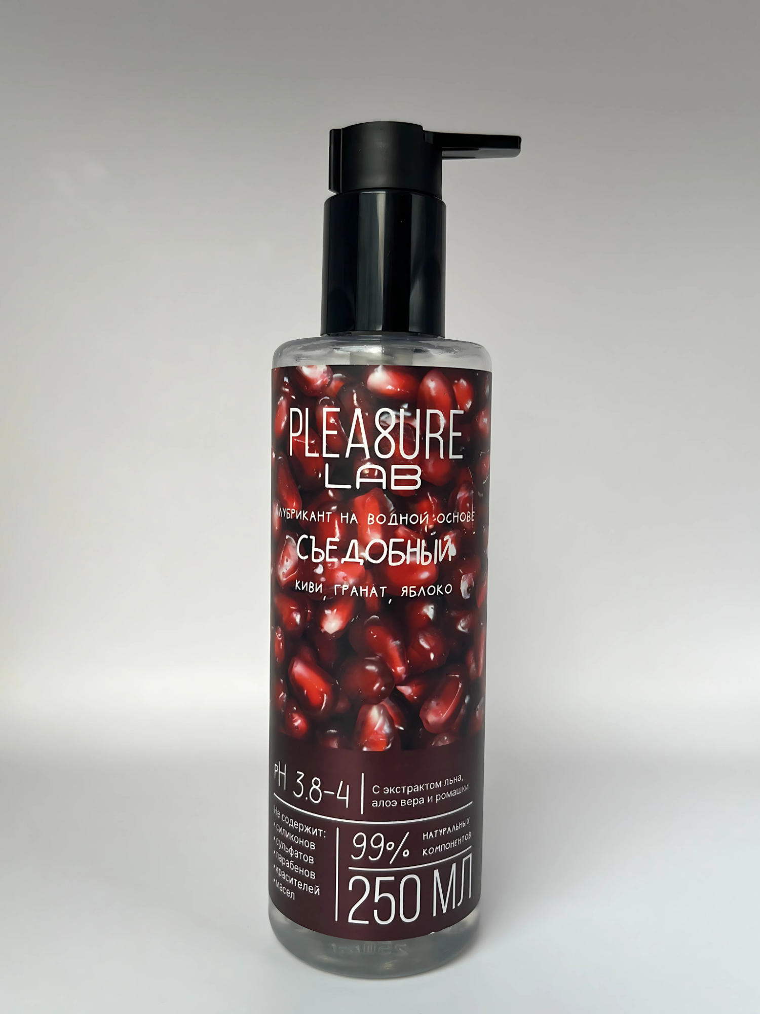 Лубрикант на водной основе Pleasure Lab с соблазнительным ароматом экзотического киви, насыщенного граната и сочного яблока придает интимным моментам яркости и страсти. Его легкий кисловатый вкус добавляет пикантности, делая близость незабываемо свежей и насыщенной. Формула основана на натуральных компонентах. Экстракт алоэ вера интенсивно увлажняет и успокаивает кожу, устраняя раздражение. Экстракт ромашки обладает выраженными противовоспалительными свойствами, обеспечивая дополнительную защиту и комфорт. Экстракт льна, насыщенный омега-3 жирными кислотами, глубоко питает и смягчает кожу, предотвращая сухость. Не содержит силиконов, сульфатов, парабенов, красителей и масел. Смазка с оптимальным pH соответствует естественному балансу слизистых, поддерживает здоровую микрофлору и предотвращает воспаления. Идеальна для чувствительной кожи, обеспечивая комфорт и защиту. Состав (INCI): Aqua, Aloe Vera Extract, Chamomile Extract, Flax Extract, Hydroxyethylcellulose, Sodium benzoat, Aroma.
