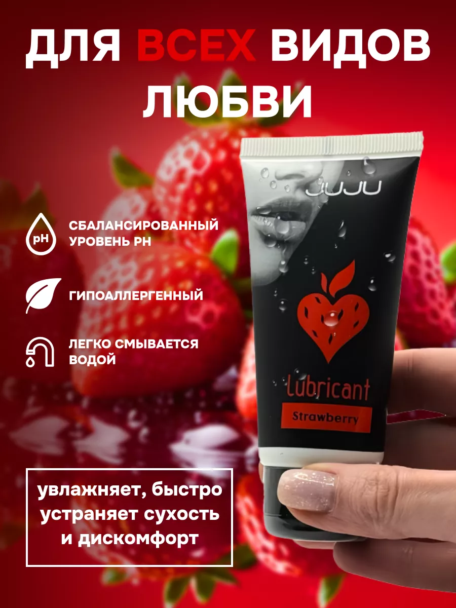 Съедобный лубрикант со вкусом клубники отлично подойдет для любого вида близости. Водная основа смазки позволяет разнообразить интимную жизнь, обеспечивая продолжительное шелковистое скольжение. Лубрикант можно использовать с любыми интим игрушками, а также с презервативами. Состав: вода очищенная, глицерин, гидроксиэтилцеллюлоза, бензоат натрия, сорбат калия, пропиленгликоль, ароматизатор пищевой, сахаринат натрия, лимонная кислота, объем – 50 мл, производитель – JuJu (Россия). срок годности-3 года.
