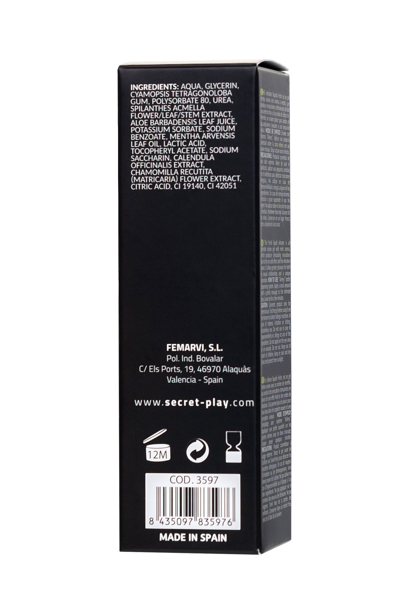 FRESH STIMULATOR LIQUID VIBRATOR 15 ML Интимный гель жидкий вибратор с эффектом холодка Liquid Vibrator Fresh Stimulator от Secret Play 15 мл Новинка для пар, которые хотят новых ощущений и готовы к экспериментам. Могли бы вы поверить, что ваше тело может вибрировать? Жидкий вибратор с эффектом холодка Liquid Vibrator Fresh Stimulator от Secret Play – продукт из натуральных и косметических компонентов. Эффект холодка и жидкий вибратор - это интимный гель, который может использоваться как в паре, так и соло. Аромат мяты и освежающий эффект с вибрационными волнами, накатывающими и сменяющими друг друга мурашками и покалыванием, вызывает не только возбуждение, но и уникальные контрастные ощущения от стимуляции интимных зон. Простое использование, которое легко вписать в прелюдию и интимную игру. Пары капель из удобного дозатора достаточно, чтобы ощутить WOW-эффект. Нанесите средство на интимные области – зону клитора, входа во влагалище, и массирующими движениями легко вотрите. Приготовьтесь, через 30 секунд эффект вибрации плавно накроет вас возбуждением. В мужском варианте требуется 2-3 капли распределить и вмассировать в головку пениса. Эффект вибрации длится около 20 минут, при необходимости гель можно применить повторно, а также увеличить количество. Это невероятно, но своим воздействием жидкий вибратор с охлаждающим эффектом произведет революцию в вашем сознании, раскроет ваш потенциал и поднимет оргазм на новый уровень. Вздрагивать от наслаждения, ощущая мурашки и вибрацию, получать мощные множественные оргазмы и делиться наслаждением с партнером – теперь это все доступно с интимным гелем Liquid Vibrator Fresh Stimulator с ароматом мяты. Емкость: 15 мл. Состав: вода, глицерин, камедь Cyamopsis Tetragonoloba, мочевина, сок листьев алоэ барбаденсис, спирт денат, сорбат калия, бензоат натрия, масло травы менты арвенсис, полисорбат 80, экстракт спилантеса акмеллы, молочнокислая кислота, токоферрил натрия календулы. , Экстракт цветков Chamomilla Recutita, лимонная кислота, CI 19140, CI 42051 Меры предосторожности: Косметический продукт только для наружного применения. Не используйте при гиперчувствительности или аллергии на какие-либо ингредиенты. В случае раздражения прекратить использование. Не наносите на глаза или на раны. Не съедобен. Храните в недоступном для детей месте. Держите в прохладном, сухом месте, вдали от солнечных лучей.