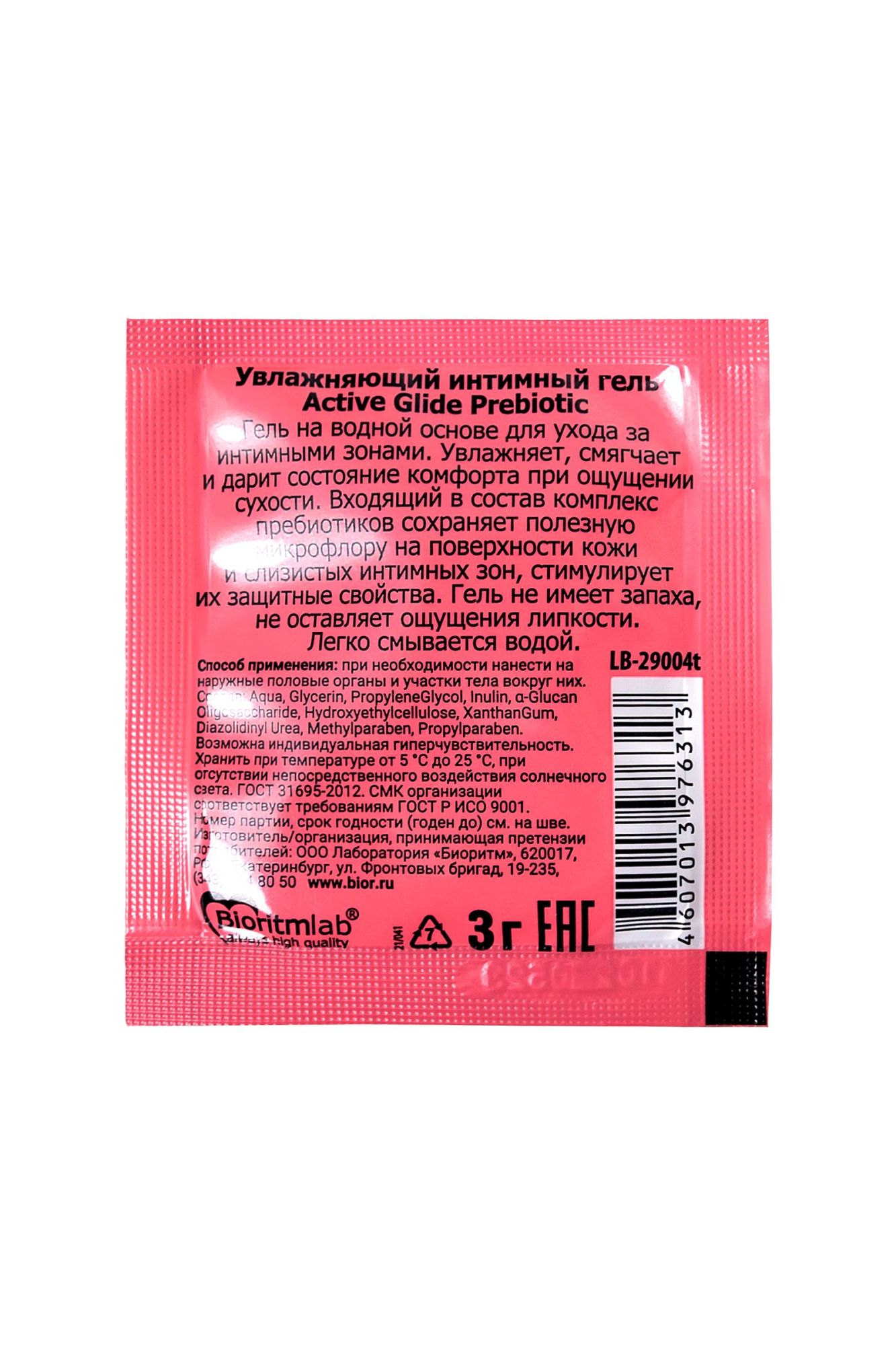 Нежный гель-любрикант на водной основе Active Glide с пребиотиком интенсивно увлажняет и смягчает интимные зоны, устраняет сухость влагалища, восполняет недостаток собственной смазки, дарит нежное и продолжительное скольжение, снимает раздражения, препятствует появлению микротравм, дарит потрясающее чувство комфорта во время близости. Входящий в состав любриканта натуральный пребиотик биолин восстанавливает и сохраняет здоровую микрофлору интимных зон, повышает сопротивляемость кожи и слизистых к неблагоприятным воздействиям. Пребиотик питает, нормализует pH-баланс, улучшает состояние кожи и слизистых, устраняет покраснения. Действие биолина очень деликатно, поэтому он подходит для ухода даже за очень «капризной» кожей. Гель-любрикант Active Glide с пребиотиком обеспечивает бережный уход за половыми органами женщин и мужчин. Не имеет цвета и запаха, легко смывается водой.