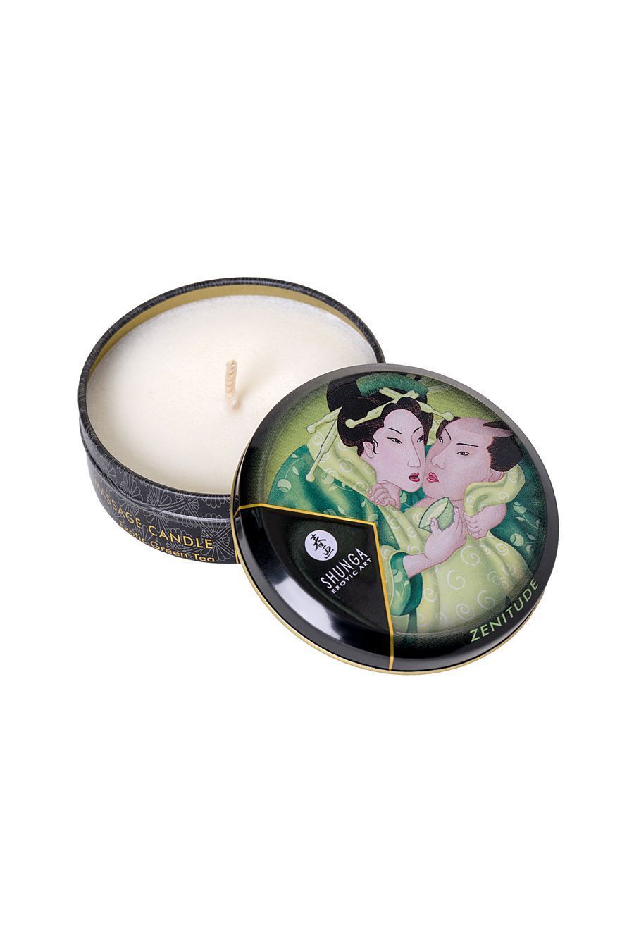 Массажное аромамасло в виде свечи Shunga «Спокойствие. Зеленый чай»(Zenitude.Exotic Green Tea), 30мл Ароматизированная свеча, превращающаяся при горении в тёплое масло для массажа. Изготовленная из 100% натуральных масел (соевого, кокосового и миндального), она питает и смягчает кожу, не обжигая её. Идеально подходит для расслабляющего массажа с нежным ароматом, без токсичных добавок и парафина.