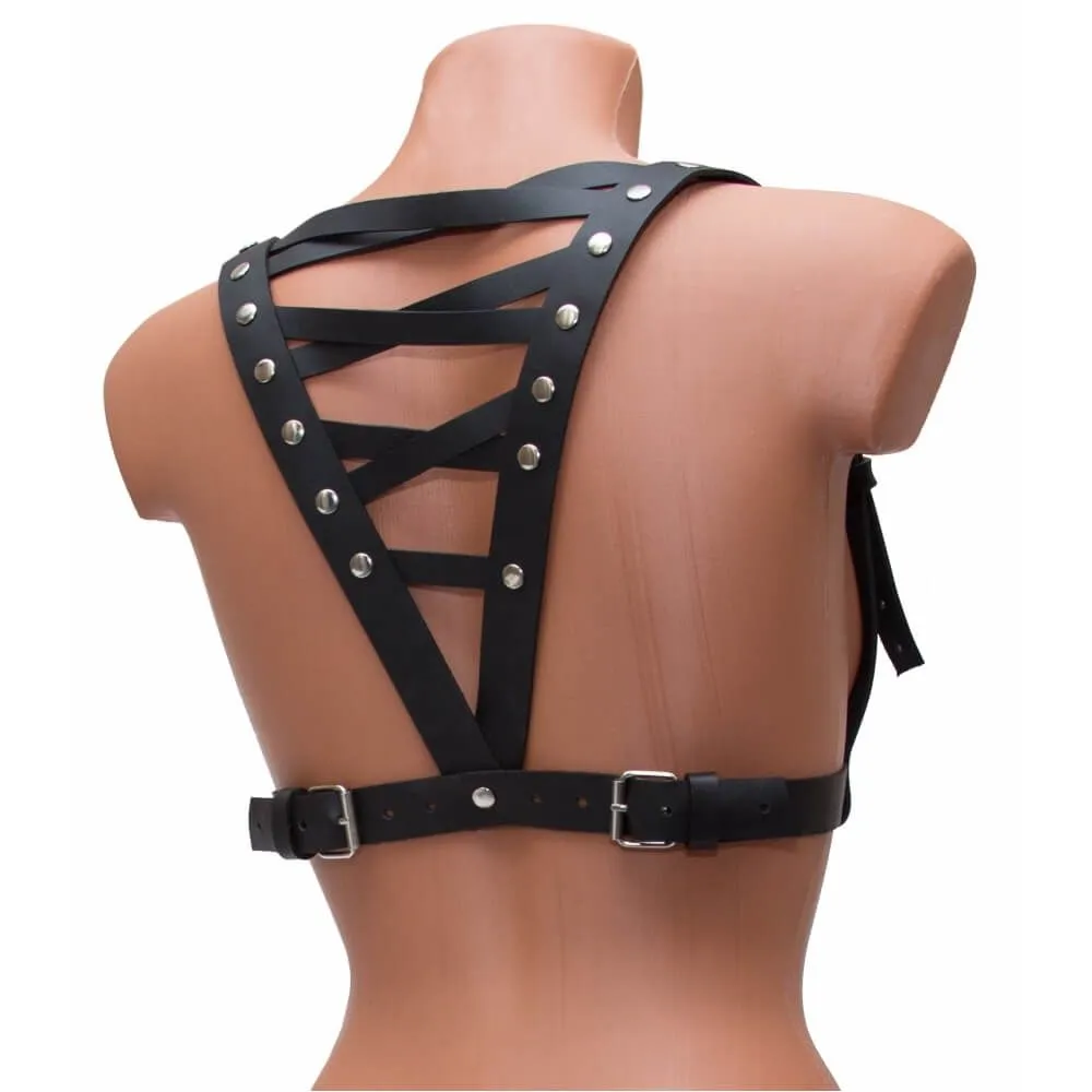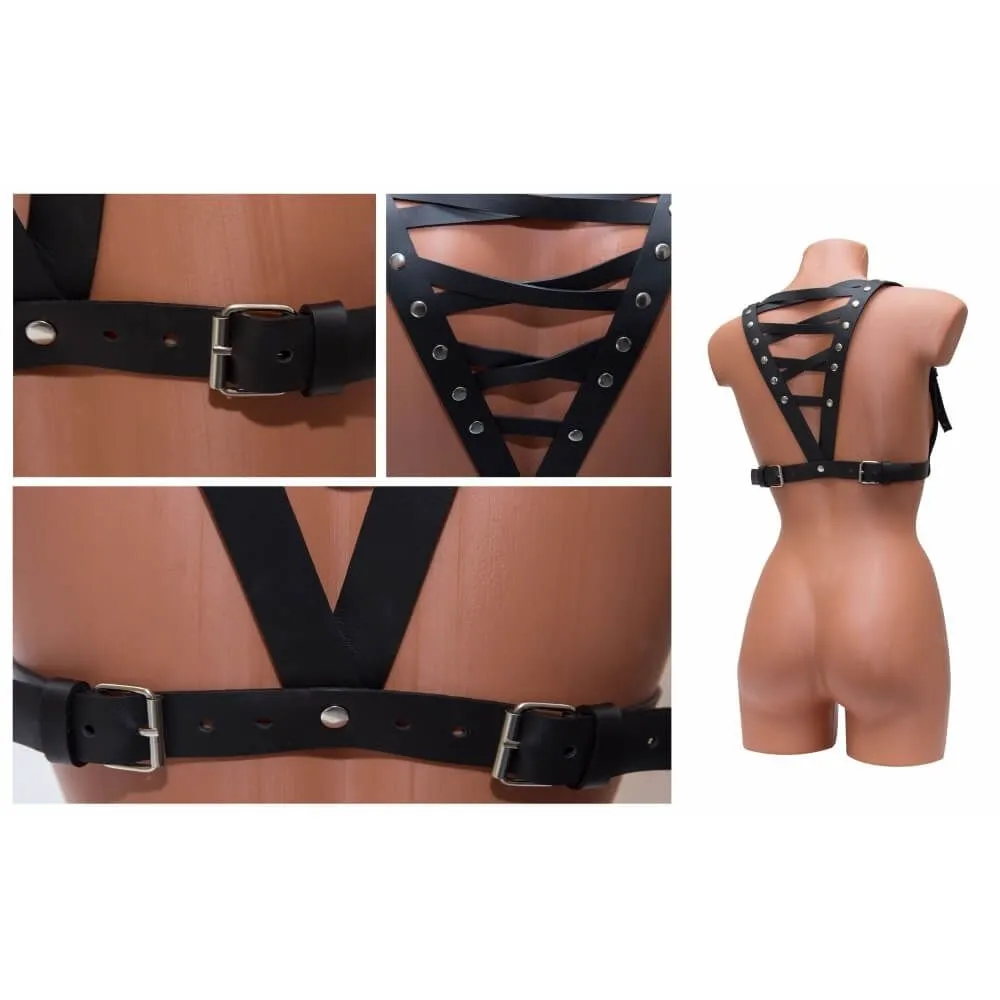 Женская портупея от бренда Lapin Rose прекрасно дополнит любой образ, которому хочется придать особый стиль и воинственность. Спереди она выглядит просто и стильно, однако сзади ремни образуют треугольник, украшенный металлическими клепками. Портупея изготовлена из плотной натуральной кожи, а вся фурнитура выполнена из нержавеющей стали с никелированным покрытием. Широкий ремень комфортно прилегает к телу и дает ощущение поддержки, а удобный фиксатор поможет отрегулировать силу обхвата. Плечевые ремни удобно регулируются легкодоступными застежками.