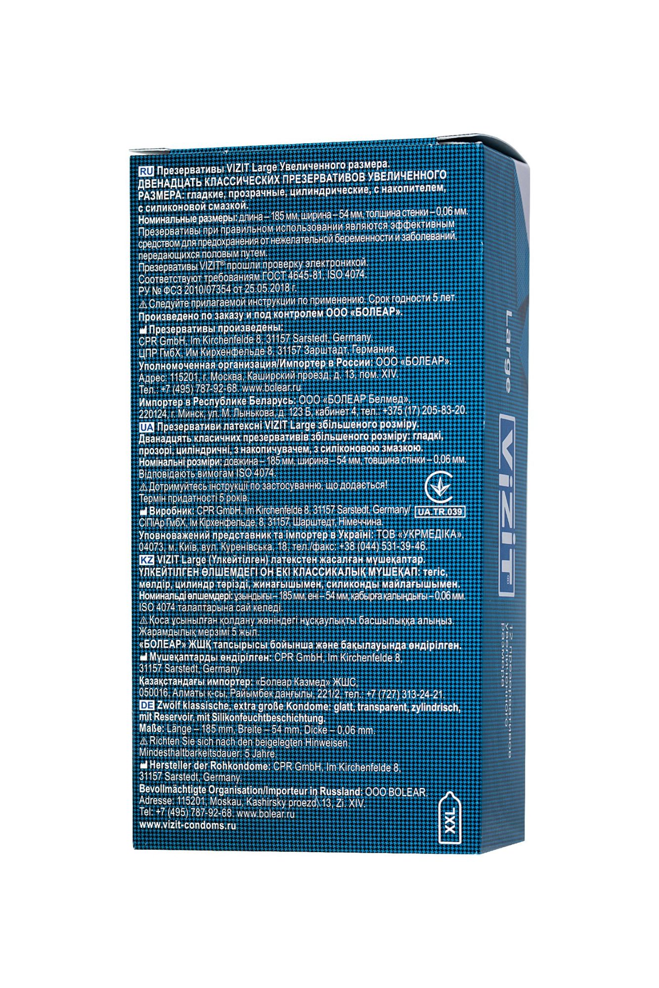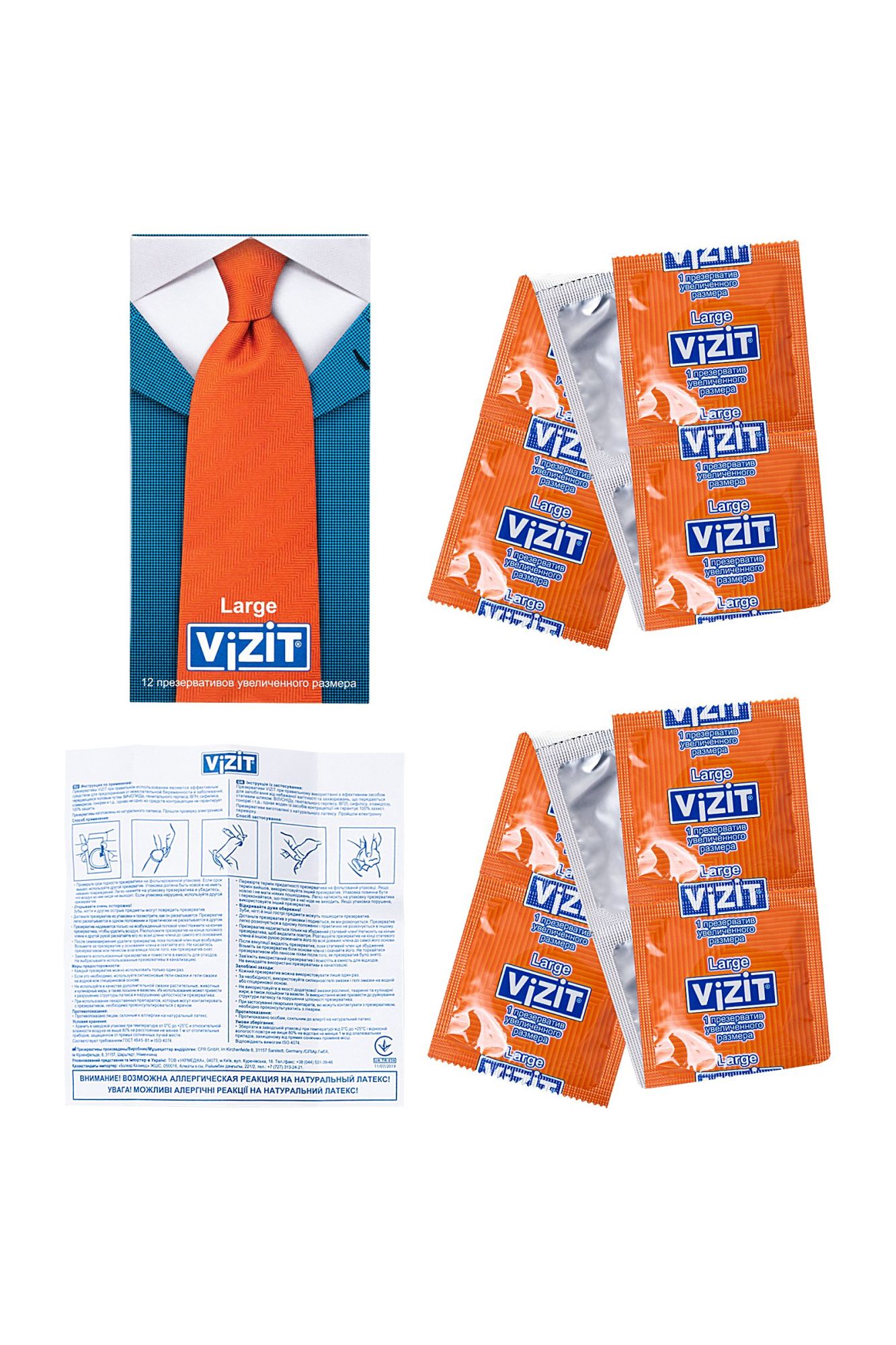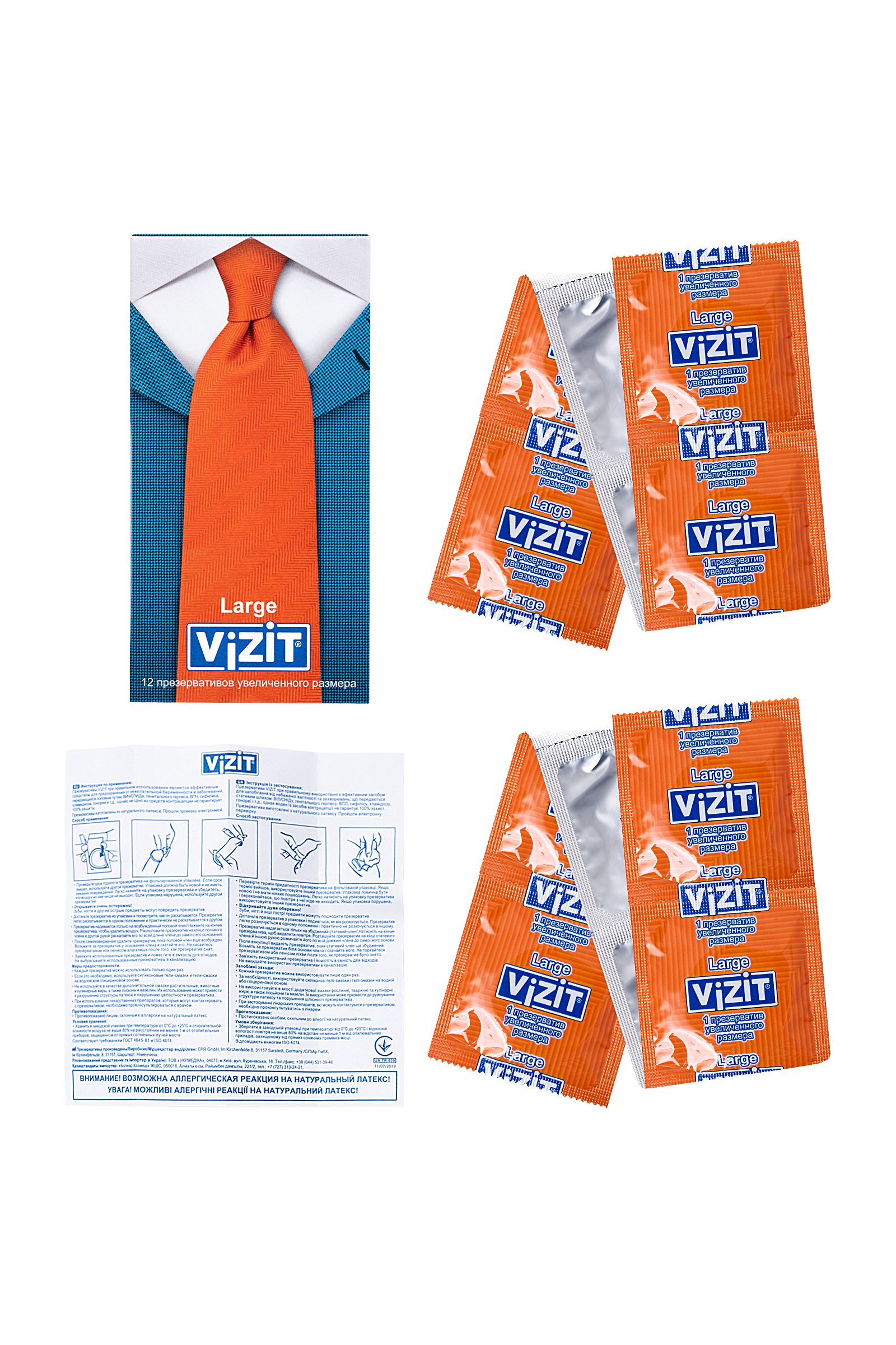 Презервативы VIZIT Large Увеличенного размера, латекс, 18,5 см Невероятно, но факт! Большинство мужчин, имеющих средний размер достоинства, покупают презервативы VIZIT Large увеличенного размера и чувствуют себя превосходно! Благодаря эластичности презерватив комфортно располагается на пенисе среднего и выше среднего размера – никакого ощущения дискомфорта или сдавленности – тот случай, когда размер имеет значение. Представьте, как приятно удивится девушка, когда вы откроете упаковку с презервативами VIZIT Large. Отдайтесь сладкому вожделению с головой, не думая о безопасности, с презервативами VIZIT Large. Цилиндрическая форма контрацептивов с накопителем из эластичного латекса дарят уверенность в надежности и защите от нежелательных факторов. Попробуйте всю линейку презервативов VIZIT, чтобы найти свой идеальный контрацептив. Лаконичный дизайн в виде пиджака и галстука, на котором изображен вид презервативов, легко поможет сделать выбор из широкого ассортимента контрацептивов VIZIT. Стильная упаковка и европейское качество презервативов VIZIT по привлекательной цене для вашего удовольствия. Эластичные – прочные и надежные Безопасные – натуральный латекс Силиконовая смазка – обеспечивает комфортный половой акт Увеличенного размера – 190 мм длина, 54 мм ширина Нейтральный запах – не отвлекает Количество штук в упаковке: 3 шт. Количество штук в упаковке: 12 шт