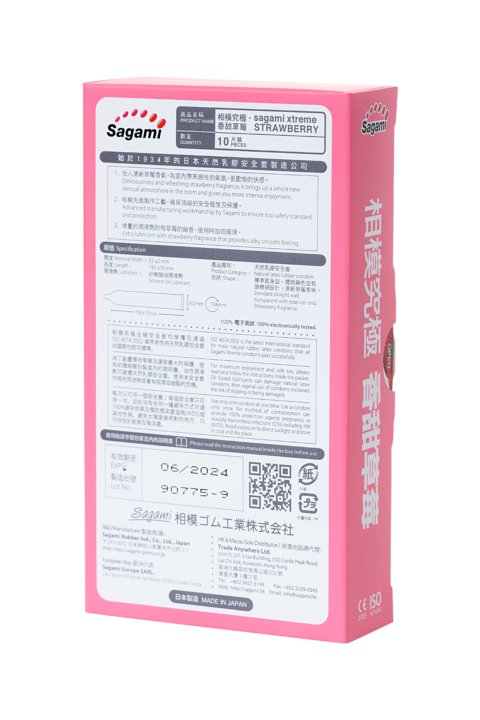 С японскими ультратонкими ароматизированными латексными презервативами Sagami Xtreme Strawberry секс станет желаннее самого вкусного десерта. Их дразнящий аромат спелой клубники провоцирует на смелые эксперименты в постели. А практически неощутимая толщина стенок позволяет насладиться волнующими импульсами, идущими от возбужденных эрогенных точек. Толщина стенок 0,04 мм — это в 2 раза меньше, чем у классических латексных презервативов. Анатомическая форма обеспечивает плотное прилегание к члену и предотвращает сползание презерватива. Силиконовая смазка создает приятное скольжение. Латекс высочайшего качества защищает от ЗППП и нежелательной беременности. Пробудите в себе вкус к страсти с Sagami Xtreme Strawberry.