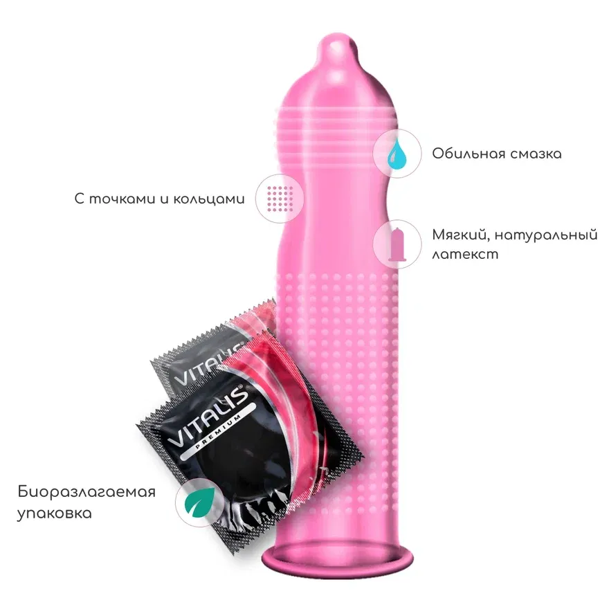 Максимальная стимуляция для двоих! Презервативы VITALIS Sensation с точками и кольцами разжигают желание обеих партнёров. Анатомическая форма презервативов VITALIS Sensation обеспечивает идеальную посадку. Дрожь в теле, которую запомнят надолго!