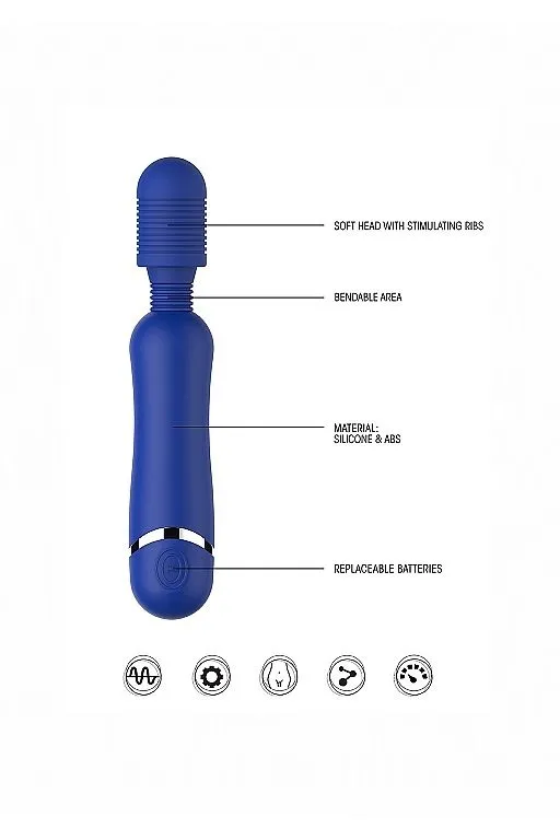 Ярко-синий современный массажер с вибрацией обладает элегантным дизайном и невероятной функциональностью. Это позволит вам насладиться новыми ощущениями интенсивной стимуляции эрогенных зон. С его помощью вы простимулируете кровообращение, снимете боль в спине и шее, вы даже можете выполнять глубокий антицеллюлитный массаж. Девайс имеет большую сферическую головку с рельефом на тонкой шейке. Держатель ручки выполнен в практичной продолговатой форме и удобно помещается в руке.