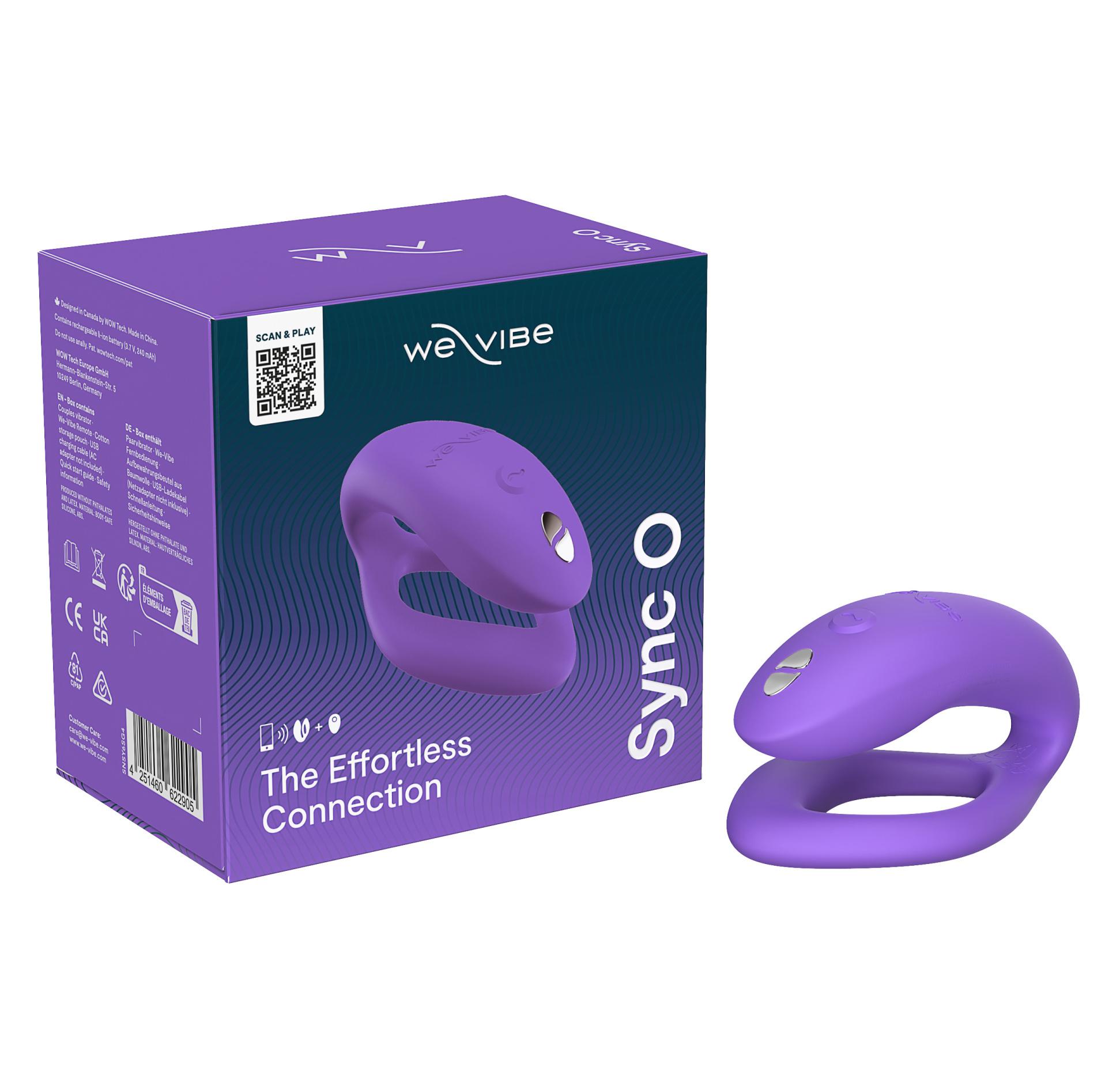 Вибратор для пар с ДУ We-Vibe Sync O, светло-фиолетовый. Роскошная секс-игрушка, которая доставит удовольствие как женщине, так и мужчине. Одна часть вводится внутрь и стимулирует точку G женщины и пенис партнера во время проникновения, другая остается снаружи и ласкает вибрацией клитор.