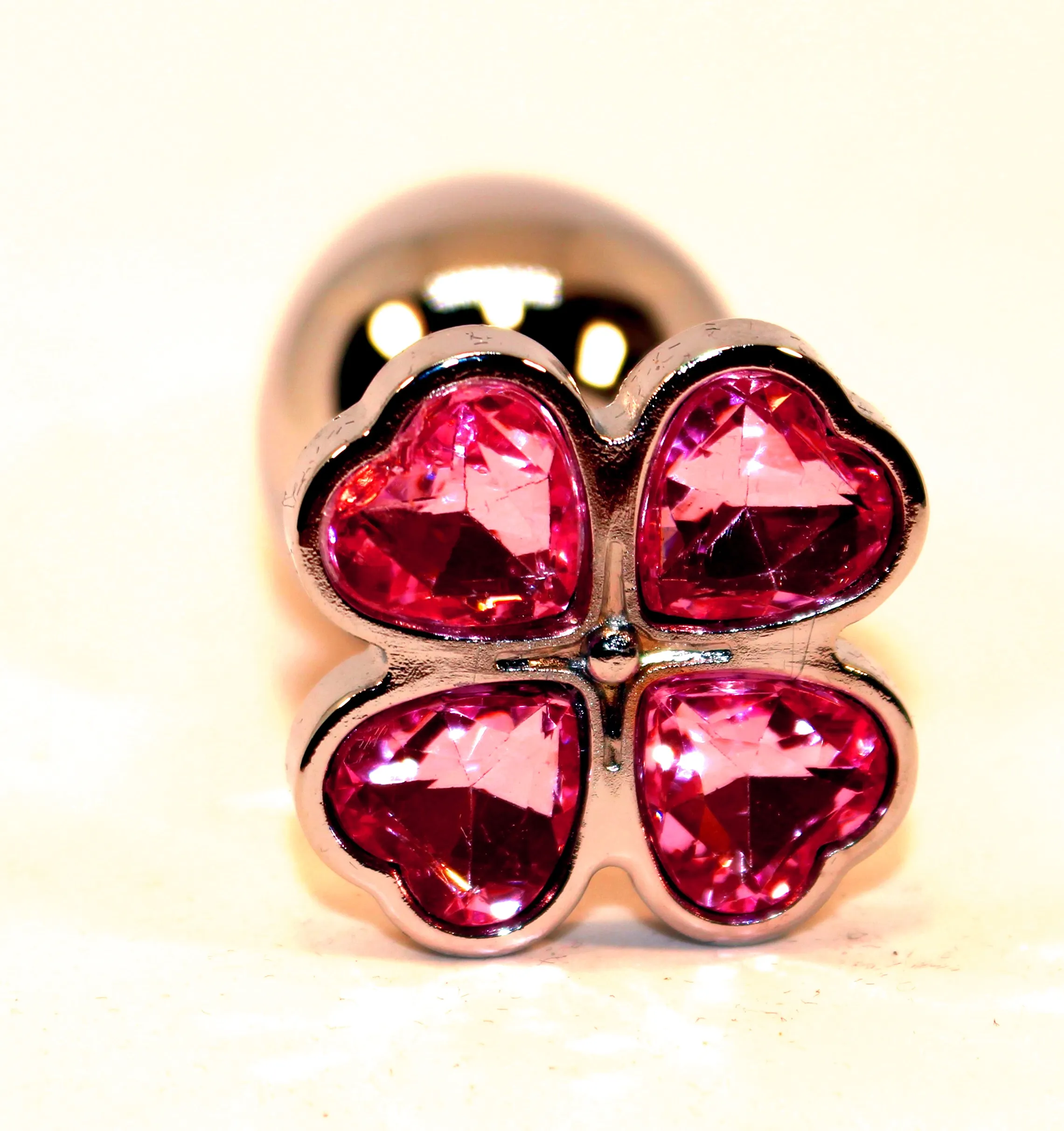 Анальная пробка серебристого цвета с яркими кристаллами в форме сердец внесет разнообразие в вашу интимную жизнь. Обладает сглаженной формой, что позволяет обеспечить легкое введение и комфортное длительное ношение. Снабжена ограничительным основанием для безопасного использования. Характеристики: Общая длина- 7 см, высота основания 1 см, рабочая длина 6 см, наибольший диаметр- 2,5 см., вес 46 гр. Упаковка: индивидуальный тканевый мешочек и коробка.