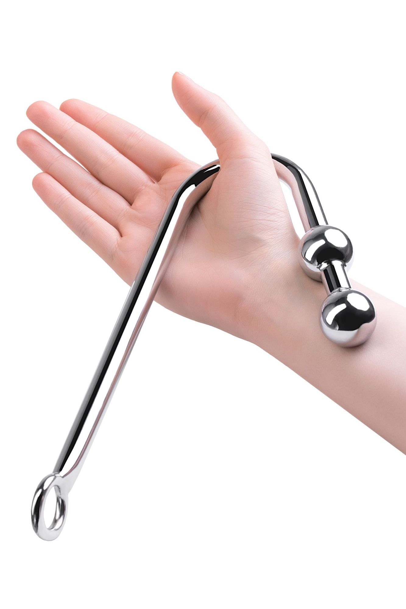 Анальный крюк с двумя вмонтированными шарами. Небольшие шары удобны для введения, расстояние между ними составляет 2см.