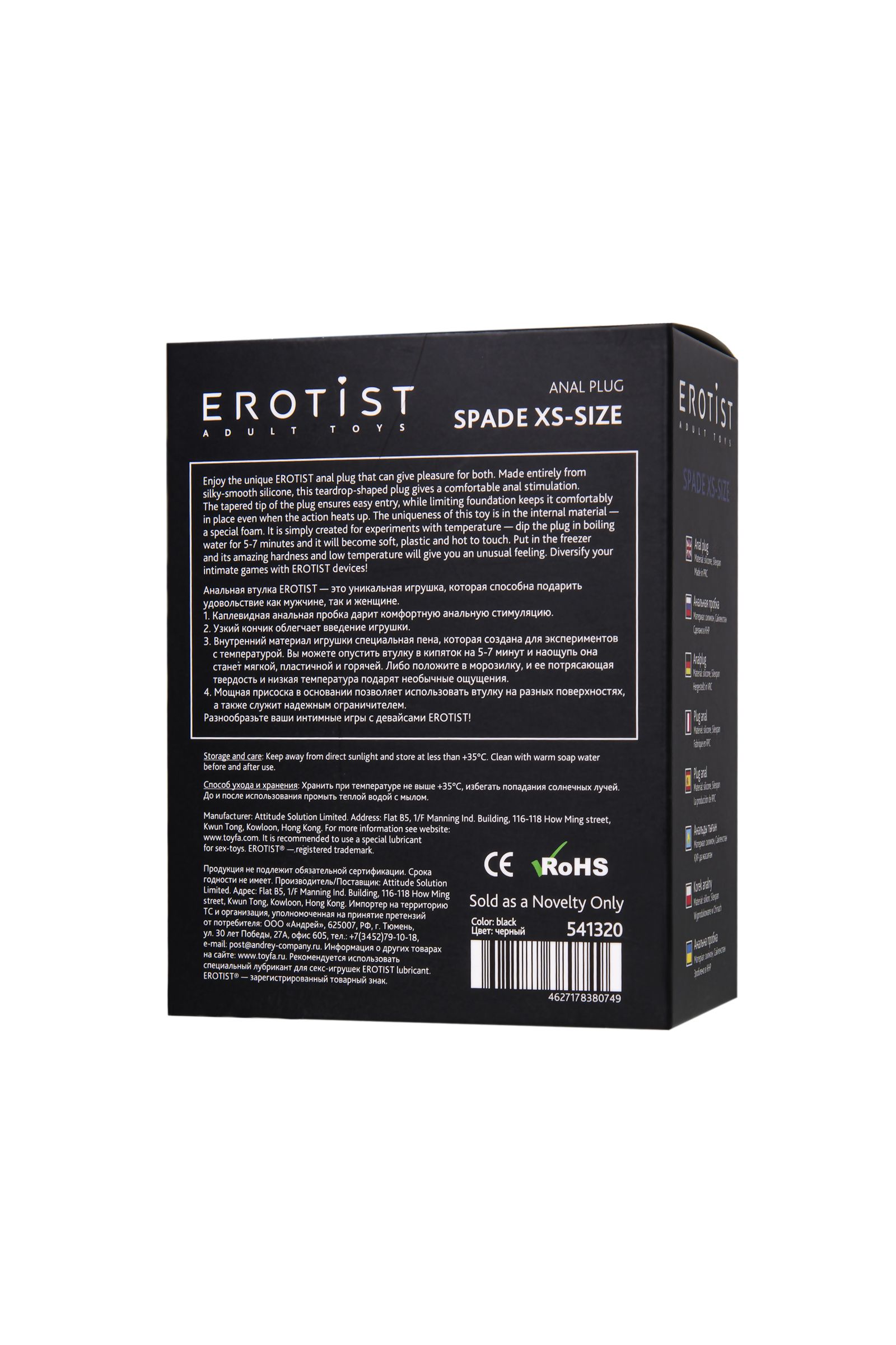 Анальная втулка EROTIST Spade — это уникальная игрушка, которая способна подарить удовольствие как мужчине, так и женщине. Каплевидная форма и миниатюрный размер XS дарит комфортную анальную стимуляцию. Узкий скругленный кончик облегчает введение игрушки. 100% водонепроницаемость и мощная присоска в основании позволяют использовать втулку на любых гладких поверхностях, даже в ванной, а также служит надежным ограничителем. Внешний материал - нежный и безопасный силикон, а внутренний материал игрушки сделан из специальной пены, которая позволяет экспериментировать с температурой: опустите втулку в кипяток на 5-7 минут, и она станет мягкой, пластичной и горячей; положите втулку в морозилку, и ее потрясающая твердость и низкая температура обеспечат необычные ощущения. Добавьте разнообразия и экспериментов в ваши интимные игры с девайсами EROTIST! Длина рабочая - 6 см Диаметр - 1,1 - 2,9 см Вес - 28 г