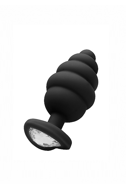 Large Ribbed Diamond Heart Plug - роскошное силиконовое анальное украшение, состоящее из пяти ребер разного диаметра у проникающей части и декоративного украшения в виде кристалла в форме сердца, имитирующего бриллиант. Гладкая обтекаемая форма и небольшой закругленный кончик способствует комфортному проникновению и получению приятных тактильных ощущений. Идеальная игрушка, подходящая для сужения влагалища, подготовки к анальному сексу и украшению тела.