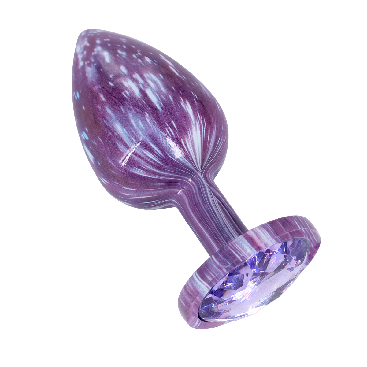 Эмалированная алюминивая анальная пробка с мраморным узором и кристаллом – это декоративное украшение, имеющее проникающую анальную часть и имитацию драгоценного камня круглой формы в основании. Идеально подходит для украшения тела, сужения влагалища, подготовки к анальному сексу.