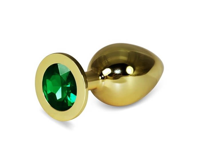 Шикарную анальную пробку большого размера смогут по достоинству оценить любители изысканных удовольствий! Благодаря своей безукоризненно гладкой поверхности и зауженному кончику пробка легко вводится в анус и позволяет деликатно подготовиться к анальному сексу. Основание пробки декорировано крупным сверкающим камнем зеленого цвета, придающим ей пикантности. Анальная пробка выполнена из металла золотистого цвета, полностью гипоаллергенна и не имеет характерного запаха.