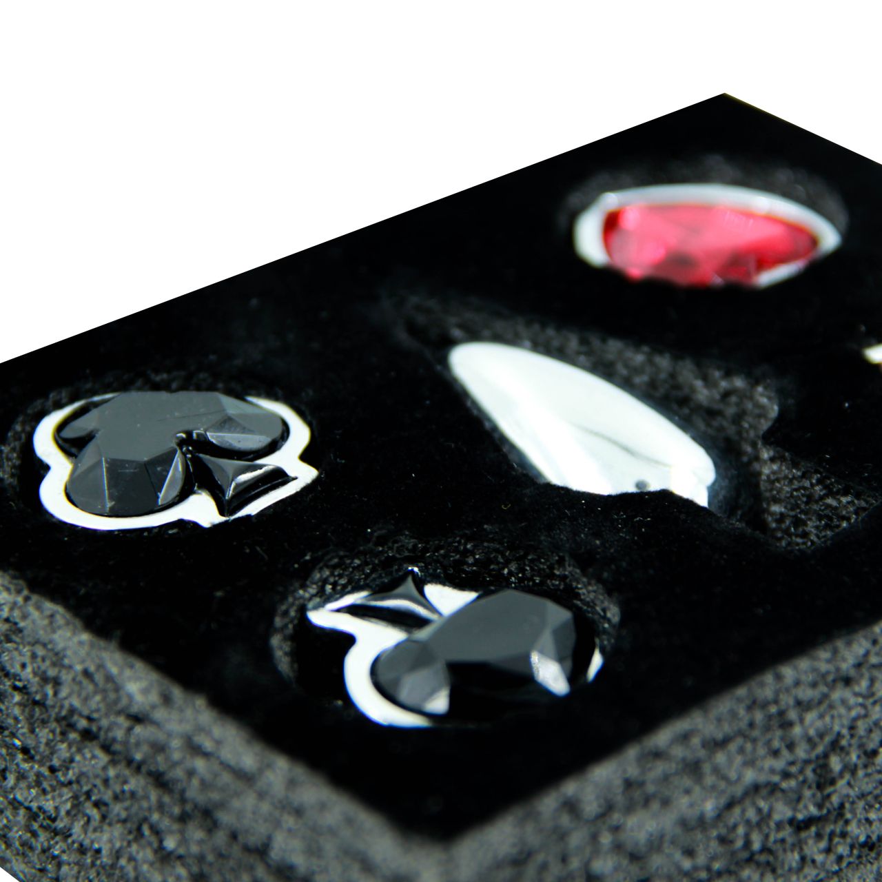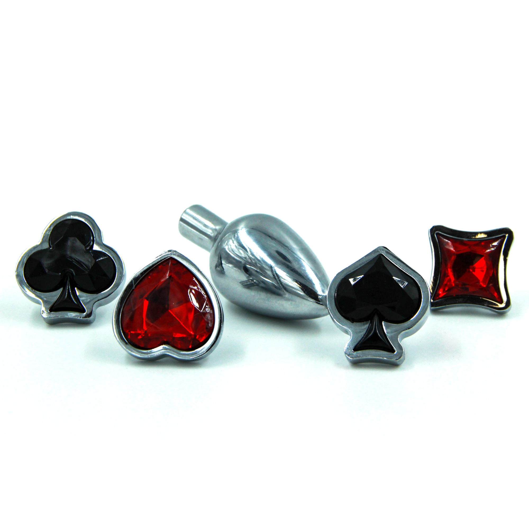 Анальная пробка с набором кристаллов (стразов) – это декоративное украшение, имеющее проникающую анальную часть и четыре имитации драгоценных камней в виде карточных мастей. Идеально подходит для украшения тела, сужения влагалища, подготовки к анальному сексу.