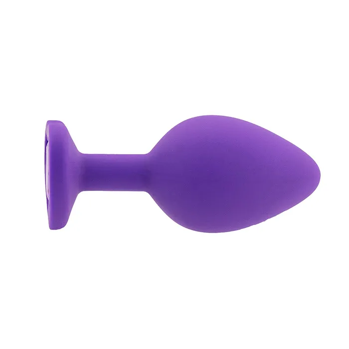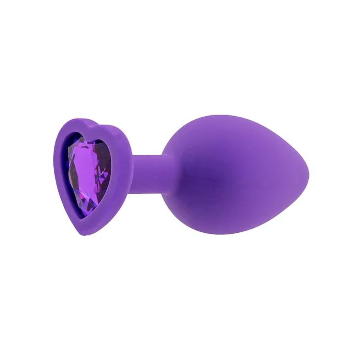 Шелковистая силиконовая анальная пробка от PinkRabbit в фиолетовом цвете с блистающим кристаллом в виде сердечка – прелестная игрушка для разнообразия любовных игр и ласк.