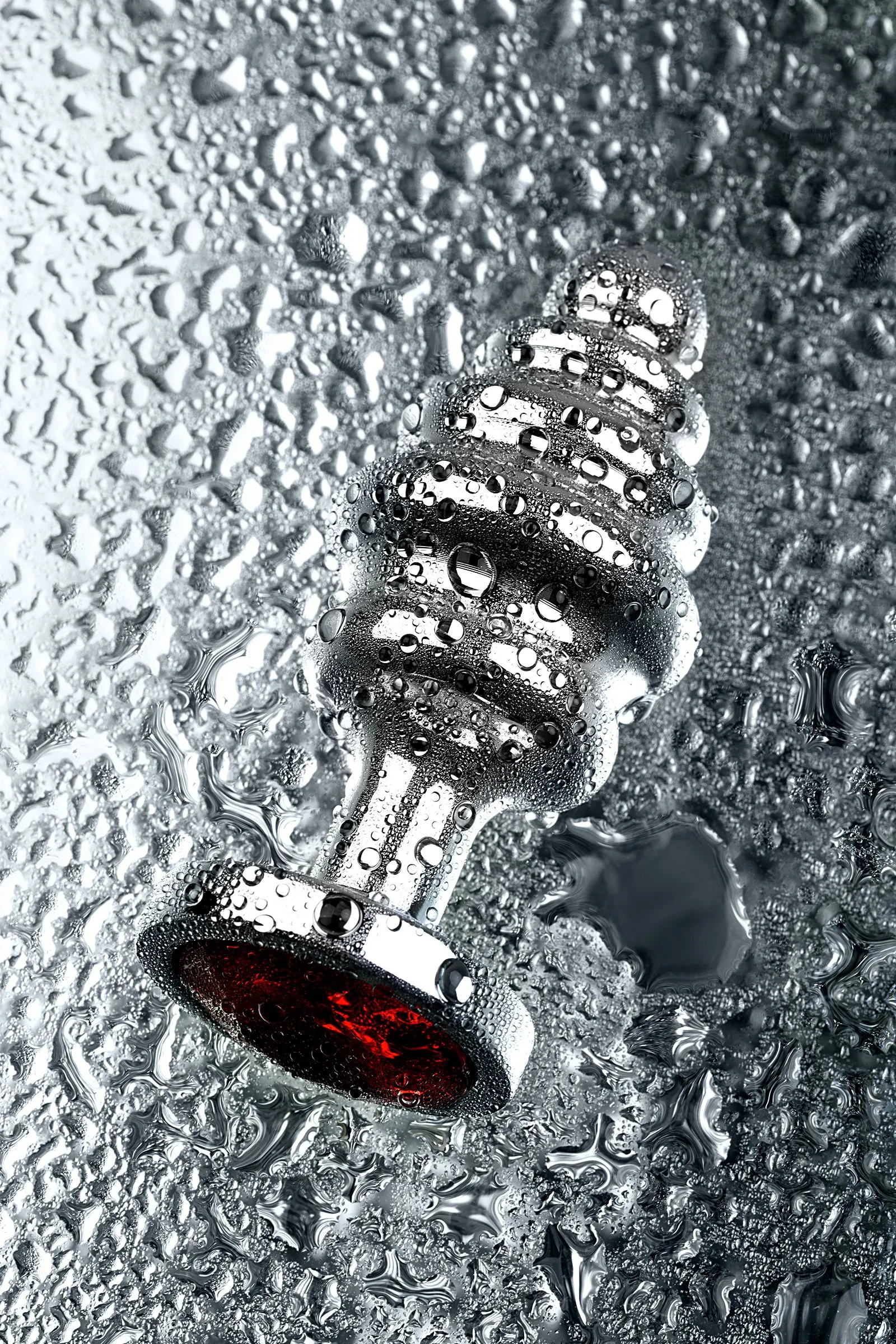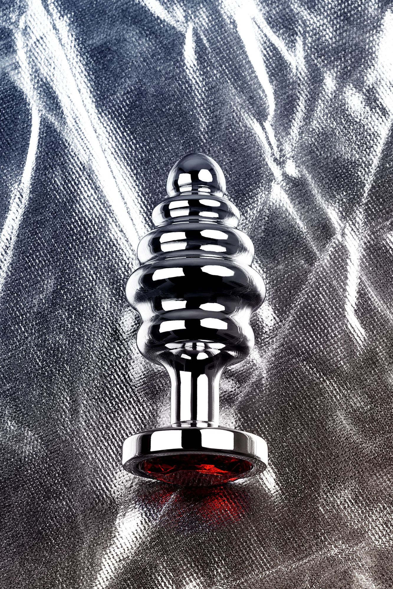 Серебристая втулка среднего размера в виде елочной игрушки со стразом цвета рубин. Рельефная поверхность придает пикантности ощущениям и легко вводится и извлекается благодаря маленькому носику и постепенно меняющемуся диаметру.