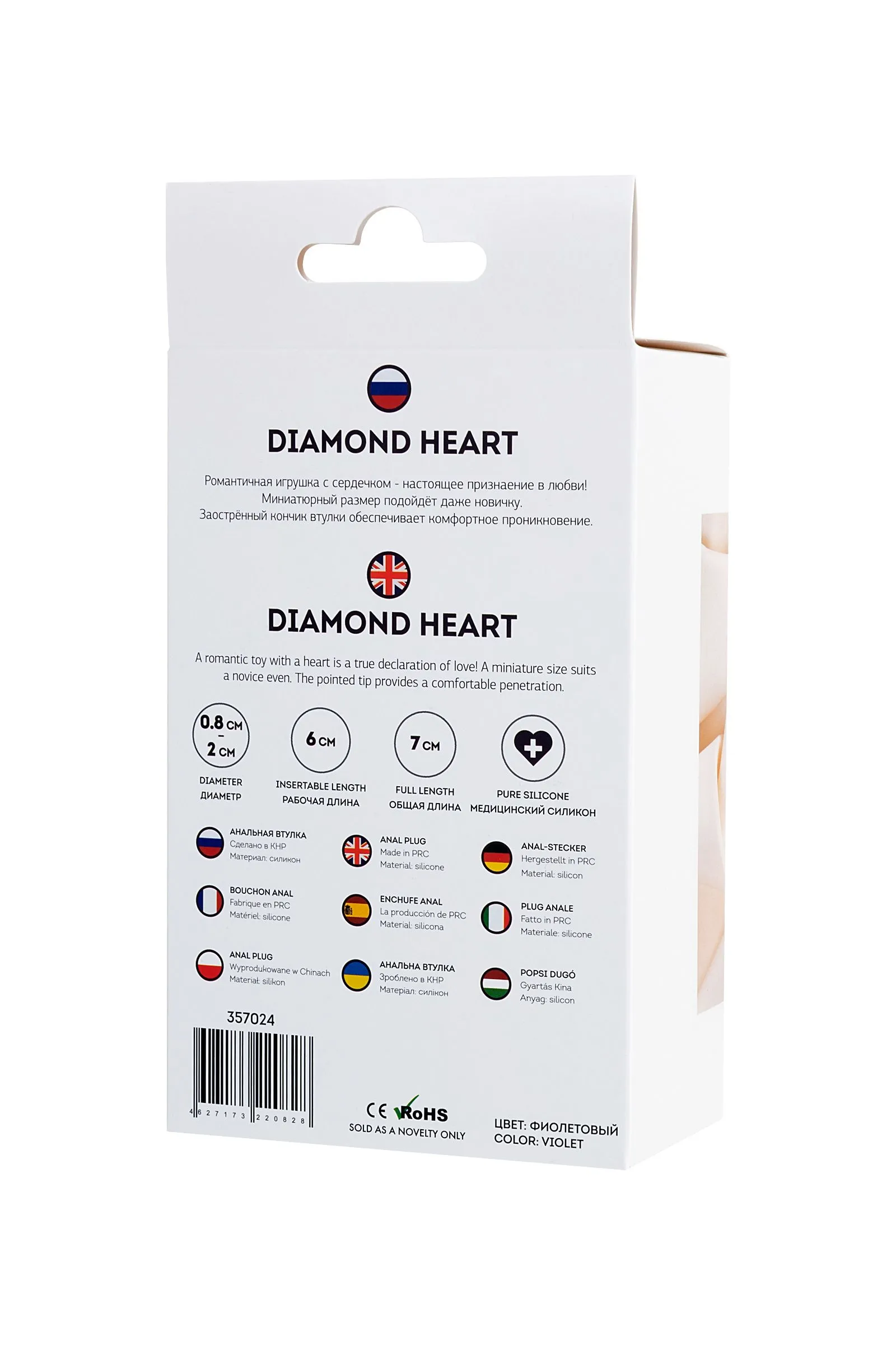 Diamond Heart Романтичная игрушка с сердечком - настоящее признаение в любви! Миниатюрный размер подойдёт даже новичку. Заострённый кончик втулки обеспечивает комфортное проникновение.