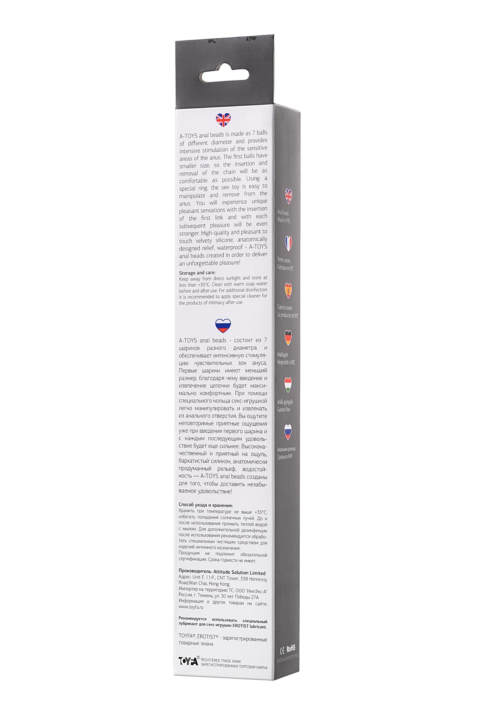 A-TOYS anal beads Coron - состоит из 7 шариков разного диаметра и обеспечивает интенсивную стимуляцию чувствительных зон ануса. Первые шарики имеют меньший размер, благодаря чему введение и извлечение цепочки будет максимально комфортным. При помощи специального кольца секс-игрушкой легко манипулировать и извлекать из анального отверстия. Вы ощутите неповторимые приятные ощущения уже при введении первого звена и с каждым последующим удовольствие будет еще сильнее. Высококачественный и приятный на ощупь, бархатистый силикон, анатомически продуманный рельеф, водостойкость — A-TOYS anal beads создан для того, чтобы доставить незабываемое удовольствие!