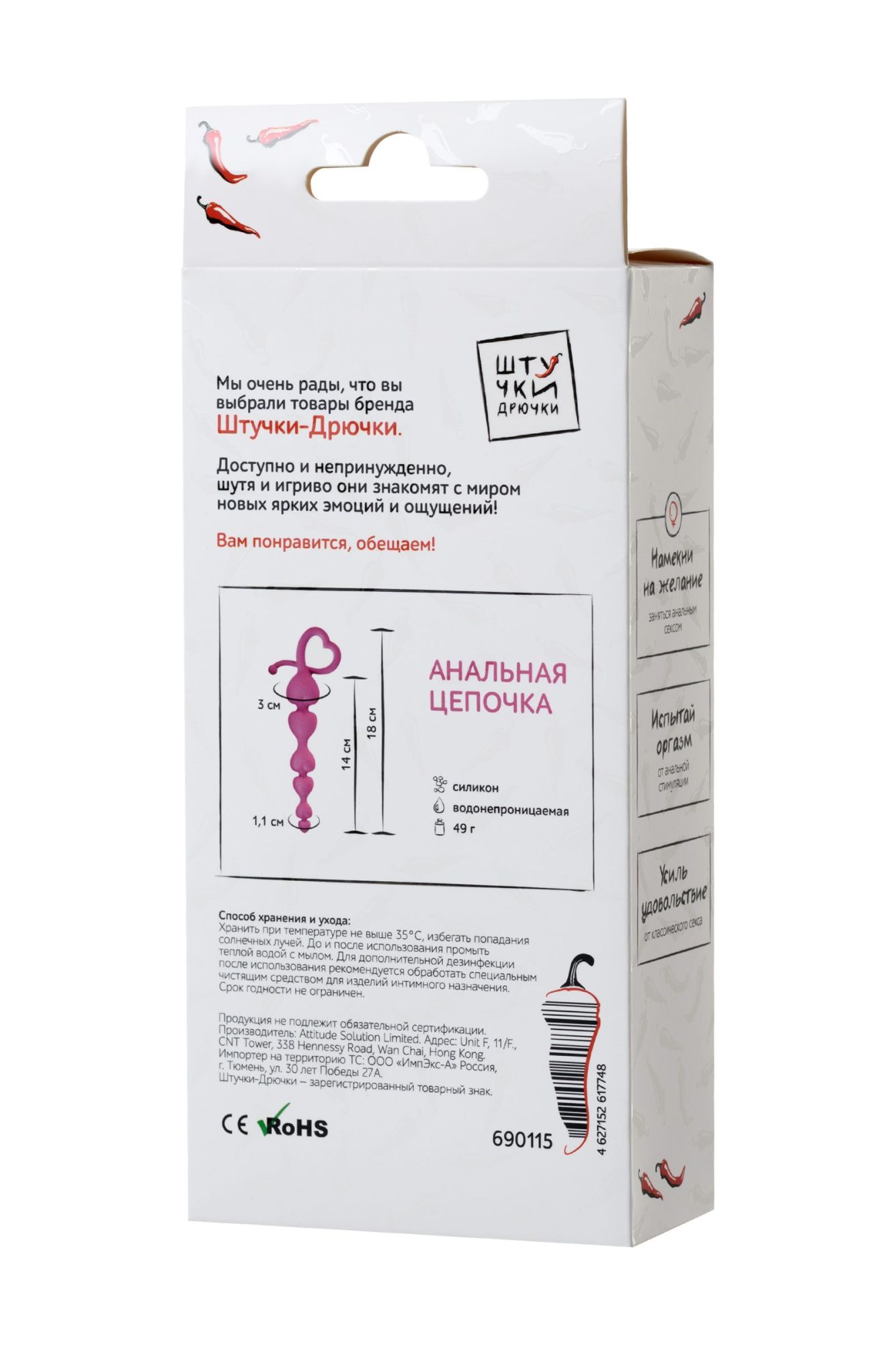 Специальная форма из постепенно увеличивающихся в диаметре сердечек обеспечивает легкое и комфортное введение. Размер сердечек подойдет новичкам и опытным любителям. Легко извлекается с помощью петельки-сердца. Гибкий материал позволяет комфортно менять позы во время секса.