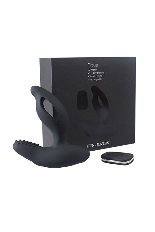 Titus - аккумуляторный двухмоторный стимулятор простаты обеспечивает мощный тройной подъем мужской силы, за счет предоставления удовольствия одновременно простате, а также зонам ануса и промежности. Изогнутый тонкий наконечник стимулирует простату, в то время как вибрация распространяется на две стороны вала для стимуляции ануса, а рельефный отросток уделяет внимание промежности – представляете насколько это должно быть мощно?! Вы не только испытаете ощущения, о которых не догадывались, поднимете все свои медицинские показатели, но и станете титаном в сексе! Никакого дискомфорта! Анатомическая форма массажера и несколько капель смазки помогут наиболее комфортно расположить стимулятор. Использование стимулятора в паре чревато долгой сексуальной игрой и ярким оргазмом! Все просто, брутально, приватно! Чёрная обтекаемая форма, пульт дистанционного управления с 11ю режимами вибрации, бесшумная вибрация – мужская сила и «стойкая жизненная позиция» надолго останутся вместе с тобой!