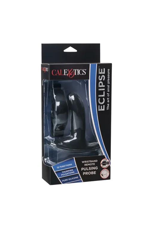 Eclipse Pulsing Probe – перезаряжаемое специализированное устройство для массажа простаты на дистанционном управлении с помощью браслета и с вращающейся бусинкой на кончике. Он изготовлен из гладкого литого гигиеничного силикона высшего качества, обеспечивающего удивительно приятные и гарнировано безопасные тактильные ощущения. Два мощных мотора анального стимулятора обеспечивает 12 вариантов равномерной глубокой вибрации и с функцию "пульсирующее воздействие"!