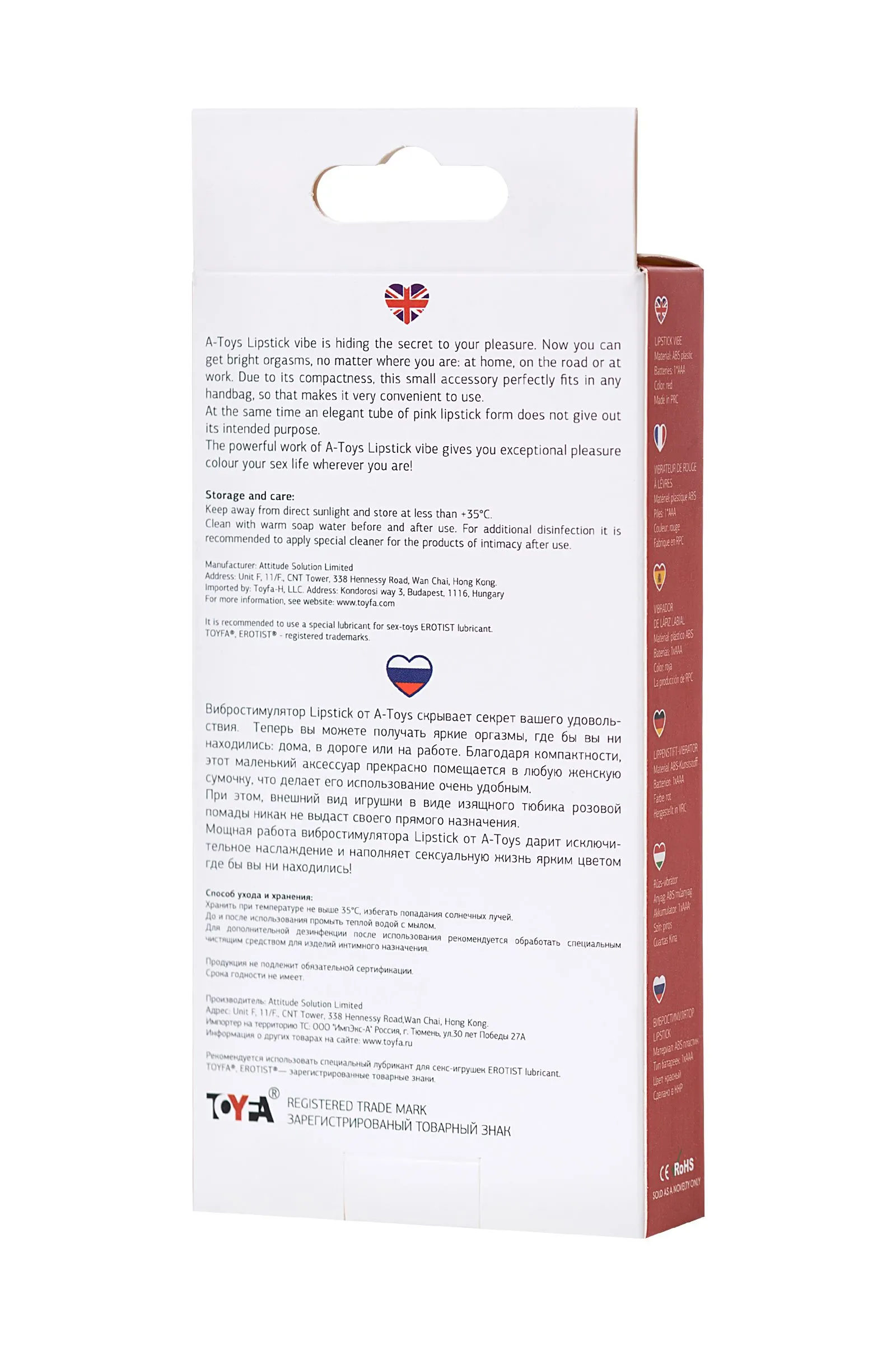 Вибростимулятор Lipstick от A-Toys скрывает секрет вашего удовольствия. Теперь вы можете получать яркие оргазмы, где бы вы ни находились: дома, в дороге или на работе. Благодаря компактности, этот маленький аксессуар прекрасно помещается в любую женскую сумочку, что делает его использование очень удобным. При этом, внешний вид игрушки в виде изящного тюбика розовой помады никак не выдаст своего прямого назначения.