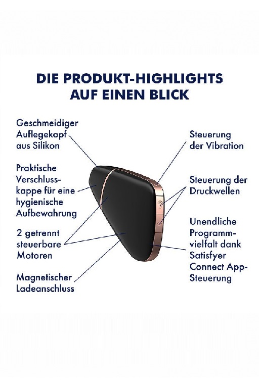 Новое приложение Satisfyer Connect предлагает вам уникальные возможности. Оно совместимо с любым Android или Apple, смартфоном, планшетом и Apple Watch. Дистанционное управление позволит наслаждаться не только стандартными программами, но и эксклюзивными функциями по созданию своих режимов вибрации.