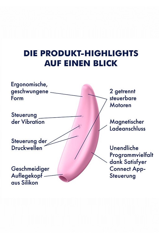 Благодаря эргономично изогнутой форме и стильному дизайну Satisfyer Curvy 3+ будто создан для вашей руки. Стимуулятор изготовлен из гладкого, шелковистого на ощупь медицинского силикона, быстро принимающего температуру тела.