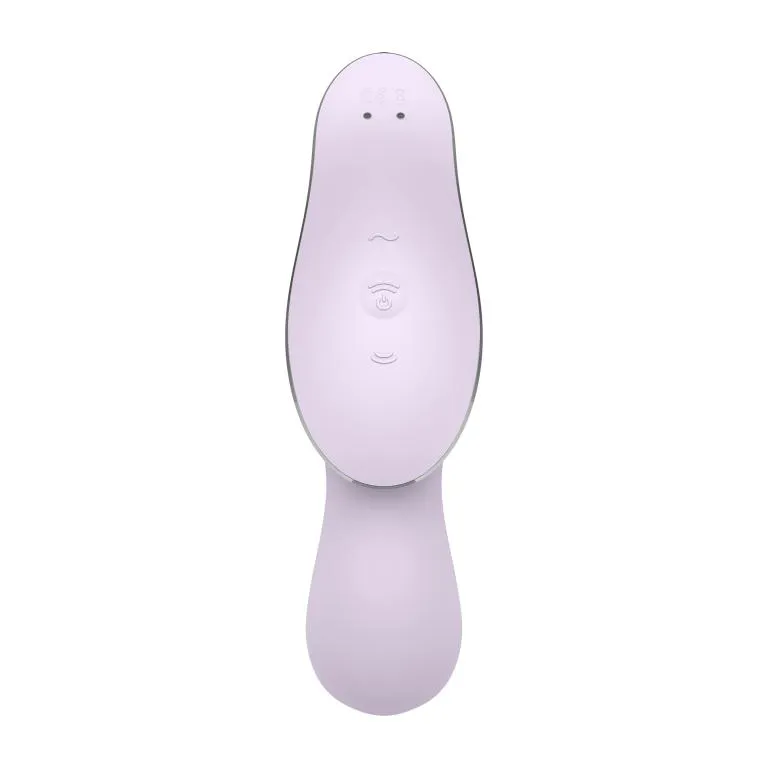 Satisfyer Curvy Trinity 2 - двойной вибростимулятор тройного назначения. Он стимулирует вакуумными волнами клитор, при этом противоположный конец приятно вибрирует, стимулируя всю зону вульвы. Также его можно отдельно использовать для стимуляции точки G.