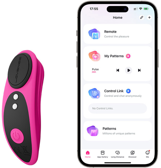 Дизайн Ferri выполнен в эргономичной форме, которая идеально повторяет контуры тела, обеспечивая комфорт и максимальное удовольствие. Изогнутая часть создана для массажа наружных зон, а кончик в форме язычка помогает сфокусировать стимуляцию в нужной точке. Благодаря интеграции с техноголией Lovense вы можете управлять устройством удаленно, делая сценарии более насыщенными. Совместное использование приложения позволяет синхронизировать Ferri с музыкой, активировать вибрации звуком, или даже создавать собственные паттерны вибрации. Также есть возможность управлять им на расстоянии — например, партнер может включать или менять режимы вибрации, находясь в другой части мира. В приложении можно установить таймер пробуждения или использовать функцию начала вибрации по расписанию, чтобы начинать день с зарядки энергии.