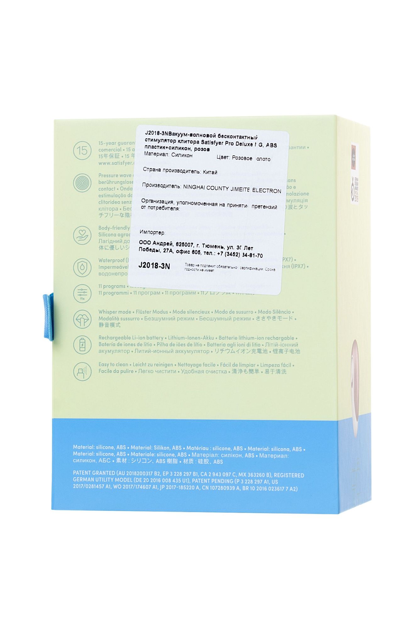 Каждая женщина достойна радости и удовольствия. Для этого Satisfyer создал целую серию вакуумных клиторальных стимуляторов с инновационной технологией бесконтактной стимуляции Air-Pulse. Встречайте Satisfyer Pro Deluxe - идеальный вакуумный вибратор, способный довести до яркого оргазма за считанные минуты. Приобретение, которое порадует не только внешним видом, но и функционалом. Стильный, миниатюрный и роскошный - сочетание белого силикона и золотисто-розового прочного пластика, удобная обтекаемая форма капли, которая помещается в ладони. Управляется всего одной кнопкой, достаточно переключать режим одним пальчиком, чтобы управлять своим удовольствием. В вашем распоряжении 11 режимов, от легкого и заигрывающего до головокружительного и бурного. Поместите Pro Deluxe над клитором и приготовьтесь к самому восхитительному оргазму в вашей жизни. Pro Deluxe замечательно впишется в любое сексуальное приключение. За счет миниатюрных размеров его удобно включать в интимную игру с партнером. А благодаря водонепроницаемости брать Pro Deluxe в душ станет обыденным делом. 11 режимов интенсивности стимуляции Надежный гарантия 15 лет Инновационные технологии – бесконтактная стимуляция Безопасный и гигиеничный медицинский силикон Удобный – эргономичная привлекательная форма Водонепроницаемость IPX7 – новые возможности в удовольствии в душе и ванной Магнитная USB-зарядка – удобно заряжать даже от ноутбука