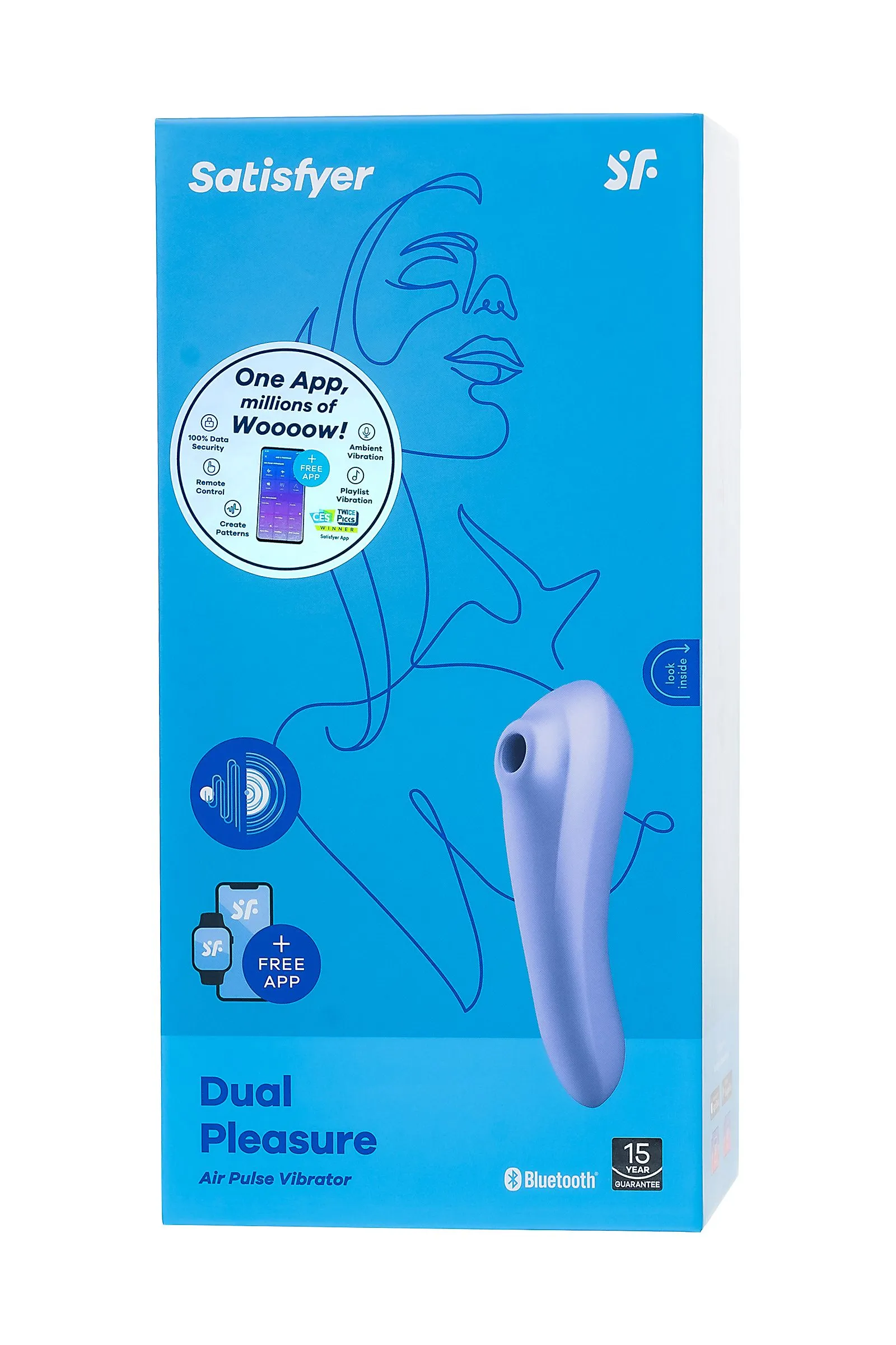 Вакуумно-волновой стимулятор Satisfyer Dual Pleasure имеет эргономичную форму, очень удобную для удержания в руке и не скользит. Девайс сочетает в себе интенсивную бесконтактную стимуляцию клитора под воздействием волны давления, а его другая сторона отлично создает чувственную вагинальную вибрацию и стимуляцию точки G, благодаря загнутой формы. Satisfyer Dual Pleasure имеет две функции: фирменная воздушно-волновая стимуляцию Satisfyer Air Pulse, а его другая сторона отлично создает чувственную вагинальную вибрацию. Вы можете перевернуть аксессуар и использовать рукоятку в роли вагинального вибратора. Управлять устройством очень просто. Верхняя кнопка отвечает за включение девайса и установку Bluetooth-соединения. Нижняя кнопка позволяет выбрать из 10 режимов вибрации, а средняя — переключить 11 режимов волновой стимуляции. Вакуумной стимуляцией и вибрацией можно управлять по отдельности. Независимо от того, какой вариант вы выберете, вам гарантированы незабываемые оргазмы, особенно благодаря ультрамягкой головке, которая очень нежно прижимается к клитору. Satisfyer Dual Pleasure может управляться при помощи смартфона через приложение Satisfyer Connect доступное на Android и iOS. Вы можете также проявить фантазию и создавать свои собственные, уникальные режимы стимуляции. Девайс поддерживает режим преобразования звуков в вибрацию, поэтому он способен вибрировать даже в такт музыке. Но и это не все - приложение для смартфона имеет функцию чата и даже позволяет передать управление игрушкой другому человеку дистанционно. Satisfyer Connect не имеет границ - в настоящее время поддерживается более 25 языков. Интегрированные функции чата / звонка и видеовызова гарантируют приятное интимное общение, к которому вы будьте готовы. Устройство полностью водонепроницаемо, поэтому с ним можно играть в ванной и душе. Чтобы получить максимум удовольствия и сохранить материал в наилучшем виде, рекомендуется пользоваться качественной смазкой на водной основе. После использования обязательно очищайте стимулятор теплой водой со специальными бактерицидными спреями для интимных товаров. Девайс работает от встроенного аккумулятора. Заряжается в течение 1,5 часов, а время работы от полного заряда составляет 1 час. Особенности: Управление через приложение или кнопками на самом устройстве. 10 режимов вибрации и 11 режимов волновой стимуляции. Изготовлена из мягкого, эластичного силикона без запаха, без аллергенов и вредных для здоровья веществ. 100% водонепроницаемый - IPX7. Время работы 1 час. Перезаряжаемый.