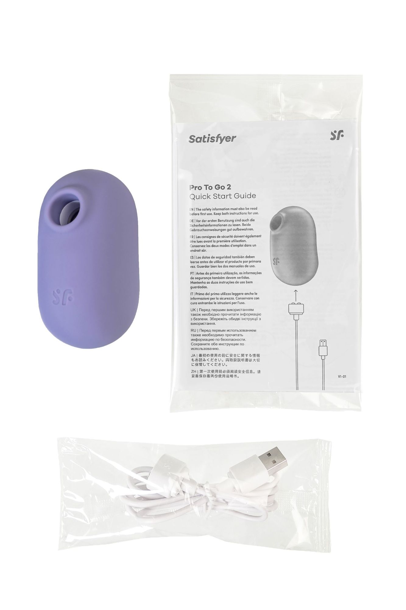 Satisfyer Pro To Go 2 – двойной стимулятор клитора, с которым легко совершать эксперименты в области получения оргазмов. Компактный Pro To Go 2 готов радовать вас наружной стимуляцией клитора с помощью двух автономных моторов. Комбинируйте воздушную пульсацию и проникающие волны вибрации, чтобы достигать неземного блаженства каждый раз. Бесконтактная стимуляция клитора – новейшая запатентованная технология Air Pulse для женских оргазмов. В вашем распоряжении 11 уровней интенсивности вакуум-волновой стимуляции и 12 программ вибрации – от нежной до интенсивной. Интуитивно понятное управление с помощью трех кнопок на корпусе. Satisfyer Pro To Go 2 – особый вид удовольствия, который понравится как искушенным пользователям, так и новичкам. Стимулятор имеет овальную эргономичную форму, которая позволяет ему удобно располагаться в руках. Благодаря нежному силикону, вам будет комфортно держать его в руках и получать удовольствие от вибрации и пульсации. Идеальный размер, чтобы брать любимый стимулятор в дорогу. Стильный и качественный гаджет создан для эстетического и сексуального удовольствия. Потрясающий шелковистый на ощупь высококачественный гипоаллергенный силикон – визитная карточка бренда Satisfyer. Поверхность раструба мягко и деликатно стимулирует клиторальную область, тактильно нежный и приятный на ощупь, силикон быстро адаптируется к температуре вашего тела. Чтобы получить максимум удовольствия и сохранить материал в наилучшем виде, рекомендуется пользоваться качественной смазкой на водной основе. После использования обязательно очищайте игрушку теплой водой со специальными бактерицидными спреями для интимных товаров. Водонепроницаемый корпус побуждает воспользоваться стимулятором в душе и ванной, чтобы по-новому ощутить импульсы своего тела. Особенности: Возможность одновременного воздействия на клитор воздушной пульсацией и вибрацией Управление кнопками на корпусе. 12 режимов вибрации и 11 режимов волновой стимуляции. Нежный лавандовый цвет и мягкий, эластичный силикон без запаха, без аллергенов и вредных для здоровья веществ. Идеальный вариант для первой игрушки, подарка и путешествий. 100% водонепроницаемый - IPX7.