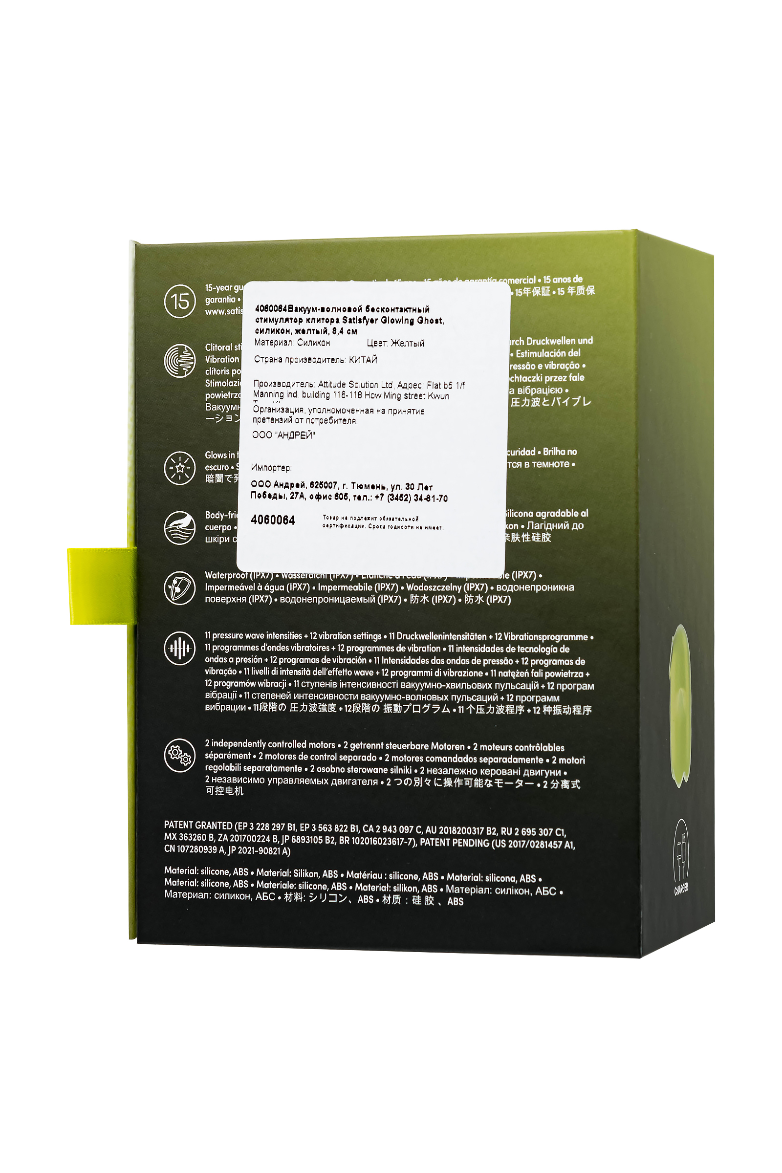 Хочешь добавить перчинки в интимную игру? Glowing Ghost от Satisfyer – это не просто секс-игрушка, это милый и забавный призрак, который станет твоим новым лучшим другом в мире удовольствий. Клиторальный вакуумно-волновой стимулятор с вибрацией обещает доставить вам волны экстаза. Технология Air Pulse использует вакуумные волны для бесконтактной стимуляции клитора, обеспечивая интенсивные и волнующие ощущения. С 11 уровнями интенсивности и 12 программами вибрации, вы сами выбираете силу и ритм стимуляции, настроив их под свои предпочтения. Эргономичный дизайн стимулятора удобно ложится в вашу руку. Шелковистое силиконовое покрытие – фирменный знак Satisfyer. Безопасный медицинский силикон приятен на ощупь и адаптируется к температуре вашего тела. Благодаря флуоресцентному силиконовому слою этот стимулятор светится в темноте, поэтому он точно не затеряется под простынями.... Glowing Ghost имеет уровень влагозащиты IPX7 – можно погружать под воду до 30 минут. Перезаряжается с помощью магнитного USB-кабеля, что обеспечивает удобство использования и долговечность. Для максимального удовольствия и сохранения материала в отличном состоянии рекомендуем использовать качественную смазку на водной основе. После использования легко очистить игрушку теплой водой со специальными бактерицидными спреями для интимных товаров. Glowing Ghost - это идеальный выбор для тех, кто хочет: Попробовать что-то новое и веселое. Добавить изюминку в свою интимную жизнь. Побаловать себя необычным и забавным гаджетом. Особенности: Мягкий силикон белого цвета, приятный на ощупь, будто обнимаешь призрака из любимого мультфильма. Вакуумные волны, которые щекочут и массируют ваш клитор, будто призрак-невидимка. 11 уровней интенсивности и 12 программ вибрации, чтобы вы нашли свой идеальный режим. 2 моторчика, которые удивят вас двойной волной удовольствия. Светится в темноте, делая ваши интимные игры еще более загадочными и волнующими. Возможность использовать игрушку в ванной и душе благодаря полной водонепроницаемости (до 30 минут на глубине до 1 метра) – IPX7. Перезаряжаемый, магнитный USB-кабель.
