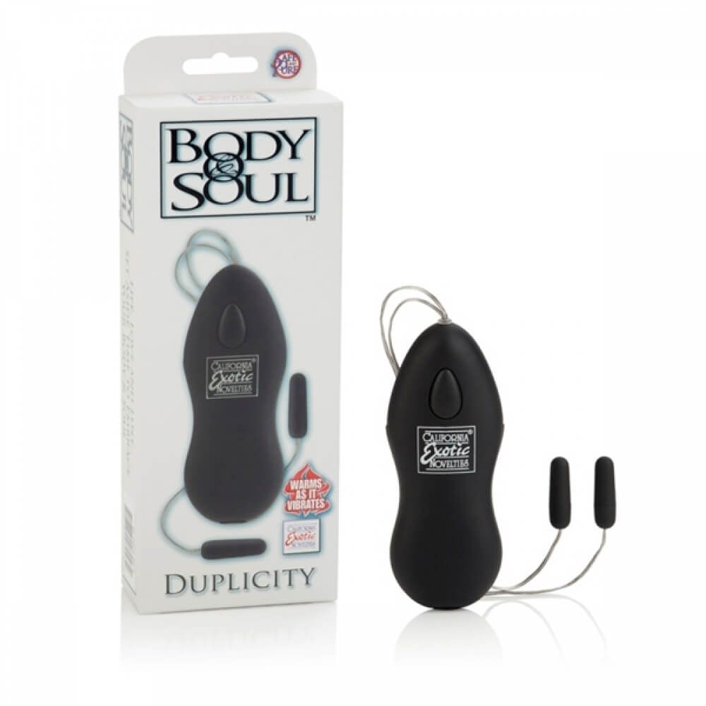 Duplicity - это две небольшие вибропули с пультом управления из коллекции Body & Soul. Такая игрушка идеально подойдет для одновременной стимуляции клитора и вагины, а также других эрогенных зон. Изделие имеет несколько режимов вибрации, которые легко регулируются с помощью выносного пульта управления. Вибропули выполнены из прочного пластика с бархатистым покрытием, поэтому они очень приятны на ощупь и будут нежно касаться Вашей кожи. С вибропулями Duplicity Вы можете играть в одиночку или вместе с партнером во время страстной прелюдии.